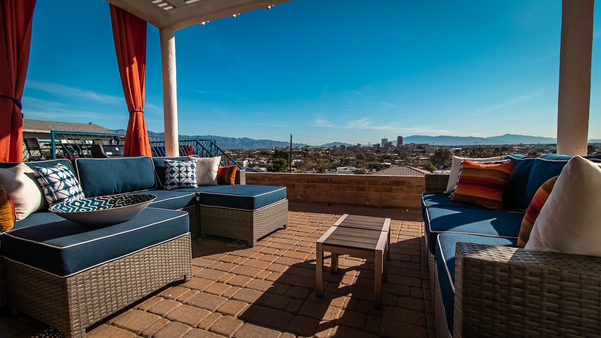 This Retro Modern, Newly Remodeled Home Sits on a Hill Overlooking Tucson. Great City & Mountain Views Which You'll Enjoy from Large Comfy Furniture on the Spacious Decks & from Inside. Every Detail of this Home has been Designed for Comfort with Thoughtful Details to Make Your Stay as Easy and Fun as Possible. Bella Vista Easily Accommodates 6 Adults. Nearby, There are Local Markets, Retail Shops, Hiking, Biking, Museums, Birding Spots, Public Transportation & Amazing Food Galore. Enjoy!
