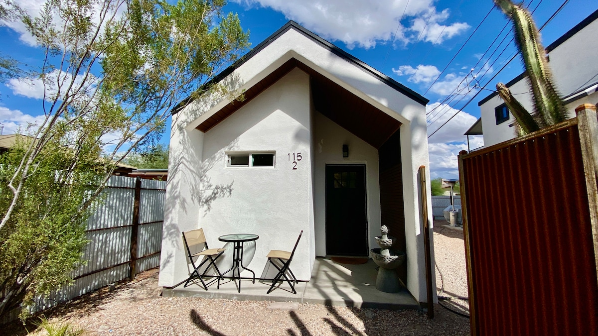 This 100-year-old stucco earthen row house with original wood floors and charming thick walls features a private patio and dedicated office space. One of 4 units on the property down a quiet residential alley street in Barrio Santa Rosa, 2 blocks from the renowned historic Barrio Viejo lined with the largest collection of 19th-century bright colorful adobe buildings in the US. Walking distance from hip restaurants, a small-batch coffee roaster, and an intimate mezcal bar that hosts live music.