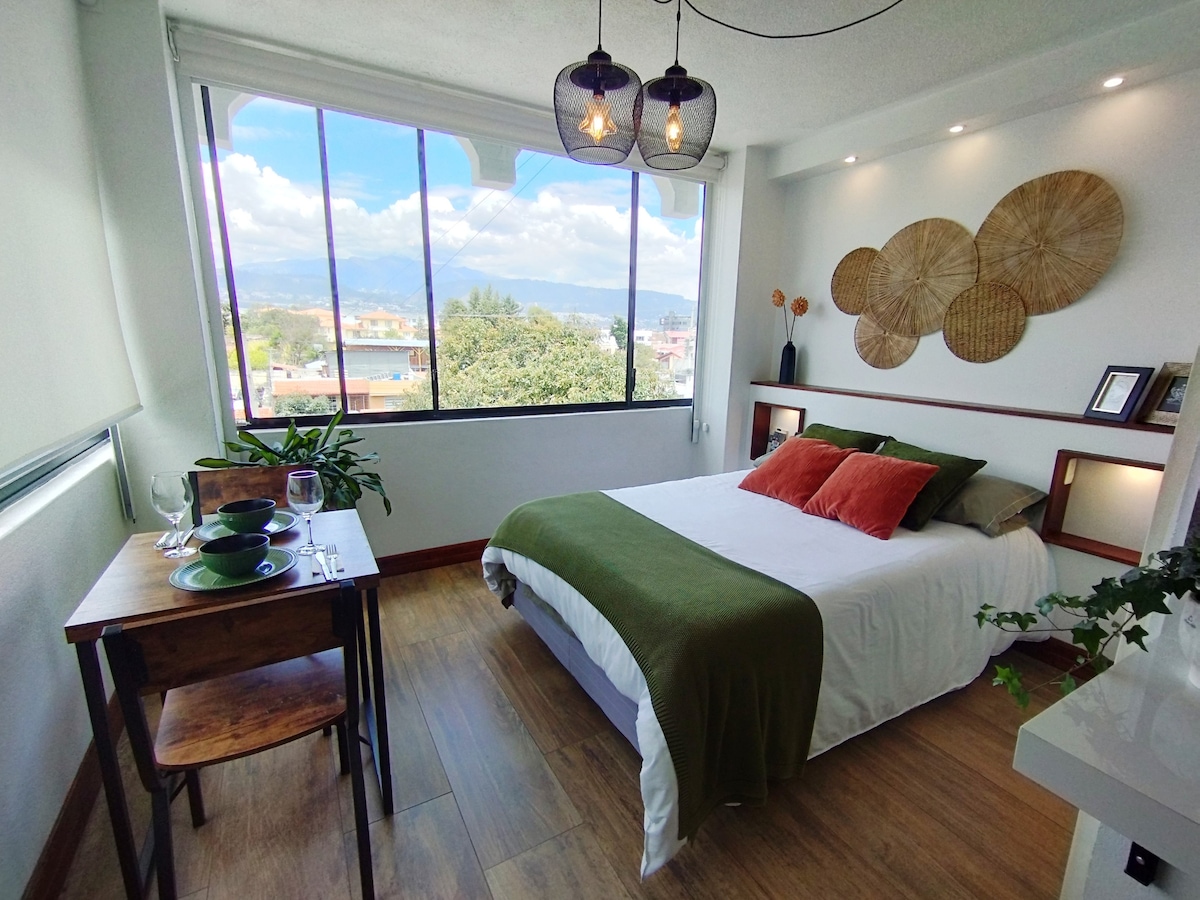 Ubicado en Tumbaco a 18 minutos del aeropuerto, Nuestro Estudio te encantará, es elegante, confortable con una hermosa vista a Quito y sus hermosas montañas. Encontrarás lo que necesitas tanto en la cocina como en el baño. Se encuentra ubicado en el tercer piso ( es importante mencionar que el edificio no tiene ascensor). Tendrás a tu disposición parqueadero seguro. Podrás visitar la zona de huerto 1500m2 con varios tipos de árboles y el jardín frontal. Bienvenidos a este lugarcito encantador!