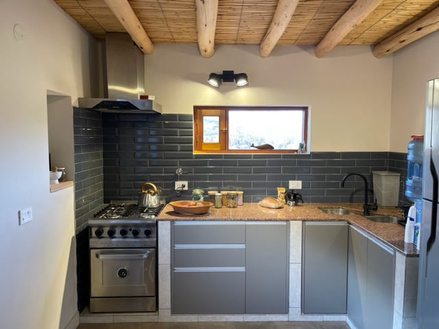 Es una cabaña amplia para cinco persona cuenta con una cama matrimonial y tres camas de una plaza y media con un baño con ducha agua caliente por termotanque solar una cocina pequeña una heladera bacha y una pileta pequeña para lavar ropa si lo desea en el dormitorio mas amplio se encuentra las camas de una plaza y en dormitorio mas pequeño la cama matrimonial donde también se encuentra una s ventanas amplia donde se puede ver el paisaje del pucara cuenta con un asador y una mesa