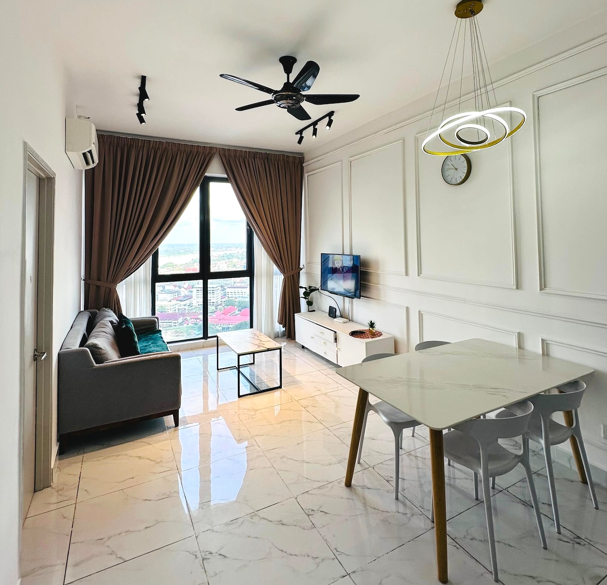 Stay in the heart of Kota Bharu and enjoy ultimate convenience. Located just a short walk to KB Mall and UTC, you can shop, dine, and access essentials without needing a car. Surrounded by plenty of food options. This fully furnished, air-conditioned unit features a queen bed, sofa bed, 43” Smart TV, washing machine, fridge, iron, balcony, and 100Mbps high-speed fibre internet—perfect for work or staycation.