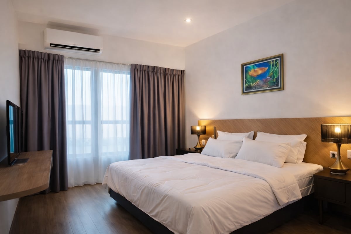 We operate multiple 2 Bedroom & 1 Bedroom apartments with hotel concept such as concierge, key card access & express check-out. The decent space consists of sleeping, dining, kitchen, living and bathroom area. It's made in a way to suit short term stay! The whole space is at crystal clear condition awaiting your arrival! Take a break and unwind at this peaceful oasis. Enjoy a memorable visit when you stay in this unique place.