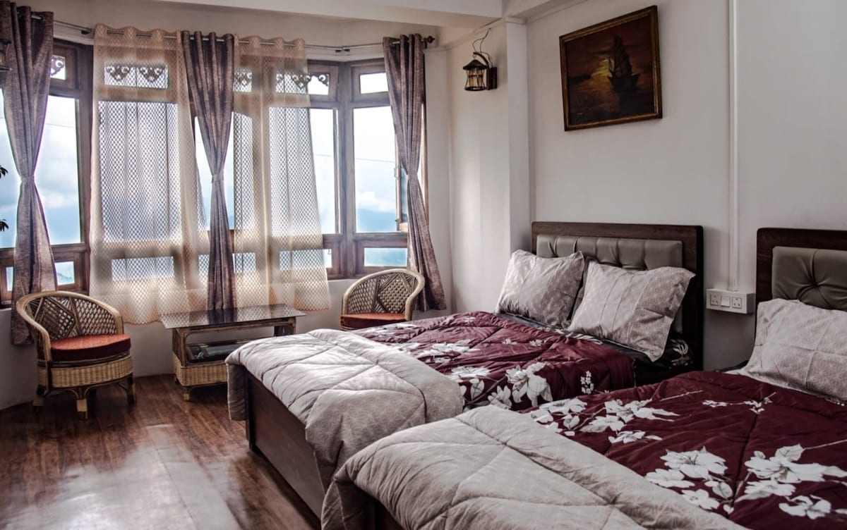 This will be the most valuable and reasonable stay in Darjeeling as you would be getting an entire apartment with fully functional kitchen and furnished living rooms and bedrooms. With just 1.5 kms away from the main town (Chauk Bazaar) , we have a safe and peaceful neighborhood suitable for couples /families/solo travelers. The attractions like zoo, HMI museum, ropeway are walkable. Shared taxi is available to move around. The view from the private balcony is mesmerizing.