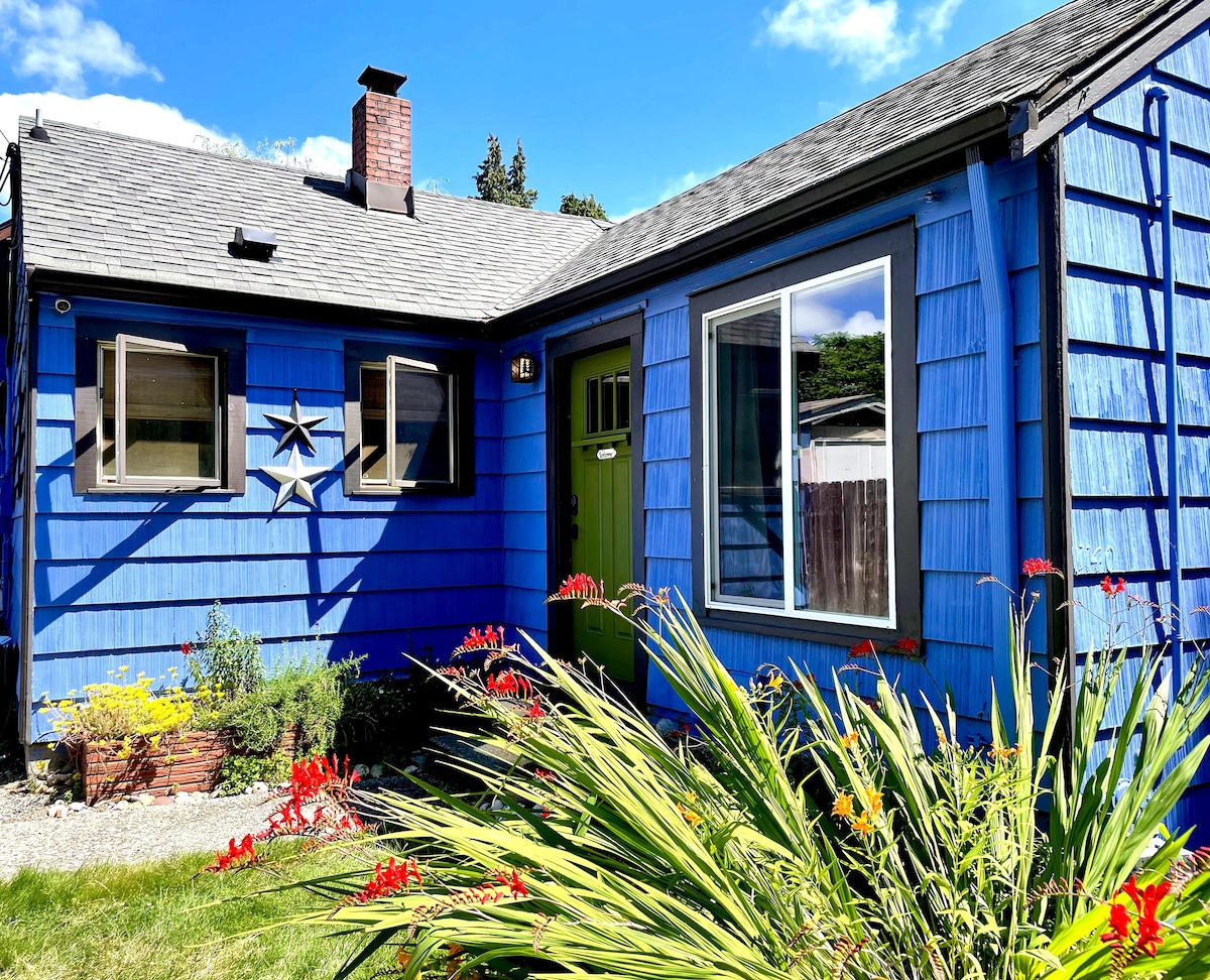 35 steps lead you from your car to the peace and privacy of Beverly Beach House. Wake to the waves at the bulkhead below you and, on clear days, the sun rising over Mt. Rainier. This lovely remodeled bungalow packs all the comforts of home in a studio. "We were surprised how a small space could be so well laid out and efficient." Nancy