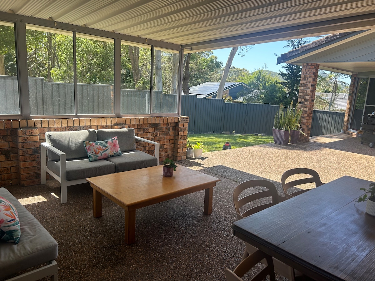 (20% discount on 7 night stays) A great little getaway home when once you get there you literally wont have to leave. Spacious entertaining area next to pool fitted with TV and sonos audio. Fishing off the jetty and the boat lovers can park up out the back with direct access to Wallis lakes. Very comfortable home furnished and setup for relaxation, we love it and are excited to share it.
