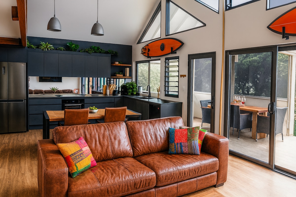 Becker 94 is just 400 metes away from One Mile Beach. There are also other surfing, fishing and patrolled beaches within 5-15 minute drive. Relax in two bedroom ground floor apartment with a large living room, open plan fully equipped kitchen, undercover patio, small garden and a private pool. (Note: the upper floor apartment is not included in the listing). Linen, towels and welcome treats are provided . This is a pet friendly home away from home with a modern interior and a beach vibe.