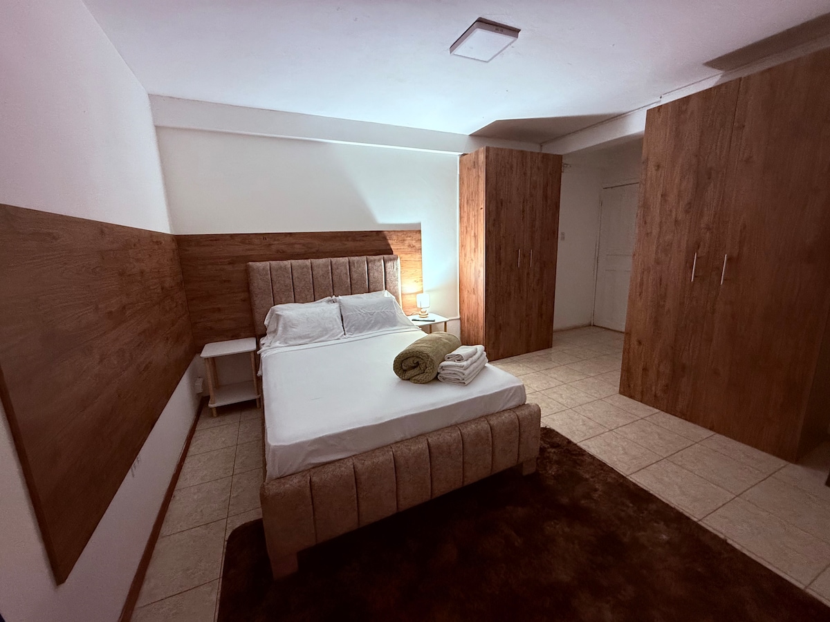 Relájate en este espacio tan tranquilo y elegante. Nos encontramos a pocos minutos del centro de la ciudad acceso a centros comerciales, restaurantes , micro mercados , cafeterías , parques , gimnasios , etc . Nuestra habitación permite disfrutar de su estancia cómoda y placentera ya se encuentra equipada con una cama 🛏️ king , agua caliente, baño completo con sus accesorios, cocina completa para su comodidad y que nuestros huéspedes se sientan como en casa . servicio de wifi 🛜 y garage.
