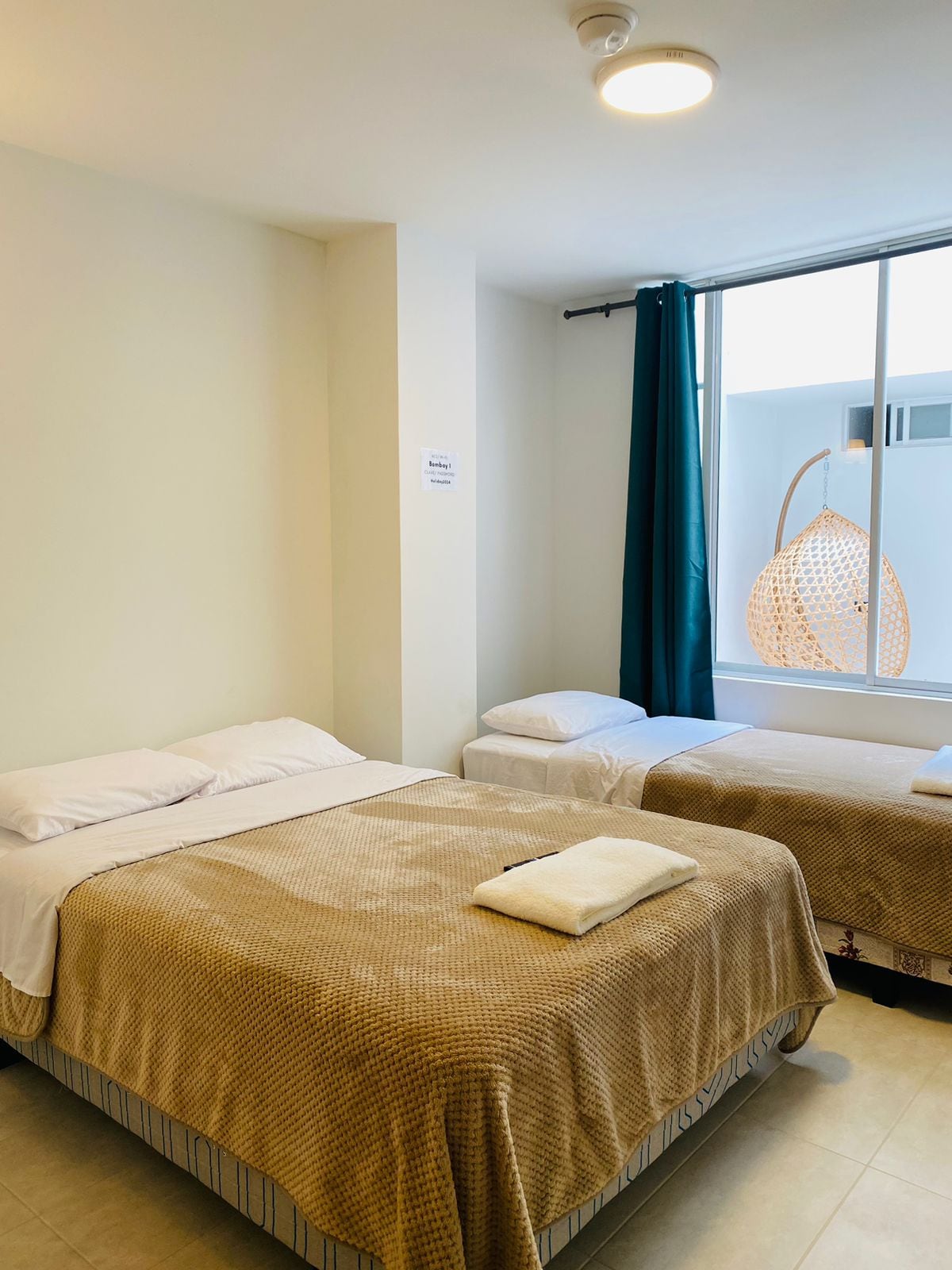 Disfruta del fácil acceso a tiendas y restaurantes populares desde este encantador lugar para hospedarte. Habitación privada para 4 personas con balcón y vista al parque infantil de baños, baño privado, agua caliente, wifgi tv cable.