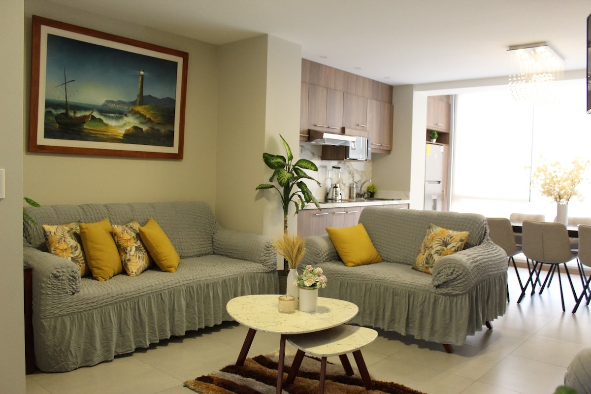 Descubre Ambato Premier Suites, un espacio tranquilo y acogedor en el corazón de la ciudad. Ubicado junto al Hotel Ambato, este departamento independiente ofrece una vista panorámica única y la calidez de un hospedaje familiar, con pan ambateño de bienvenida. Su ubicación céntrica permite fácil acceso a parques, museos, comercios, hospitales y sectores como Ficoa y Miraflores. Ven y disfruta de tu casa en Ambato.