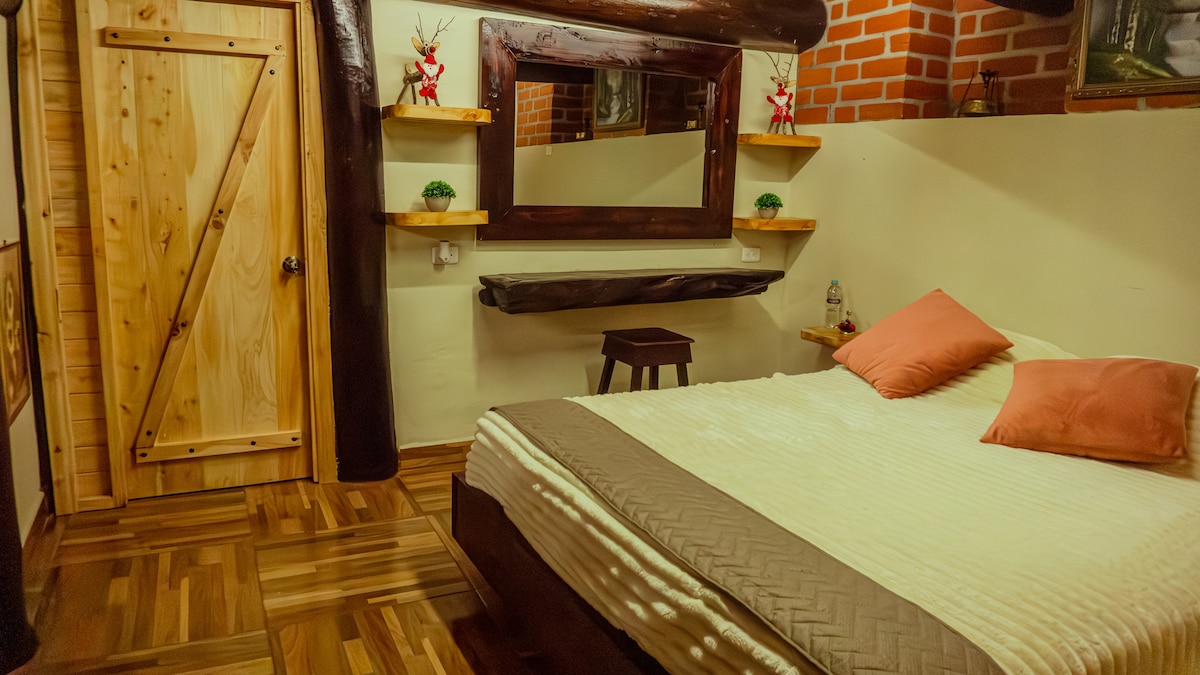 Quieres desconectarte de la ciudad y conectarte con la naturaleza? ¡Este es el lugar! Guaytambos Glamping es el lugar perfecto! La cabaña tiene capacidad hasta para máximo 5 personas. Habitación con cama king, baño privado, sala, jacuzzi y jardines. En la parte alta existen dos camas twin. Tv con internet y Netflix. WiFi. En la parte externa área para fogata.