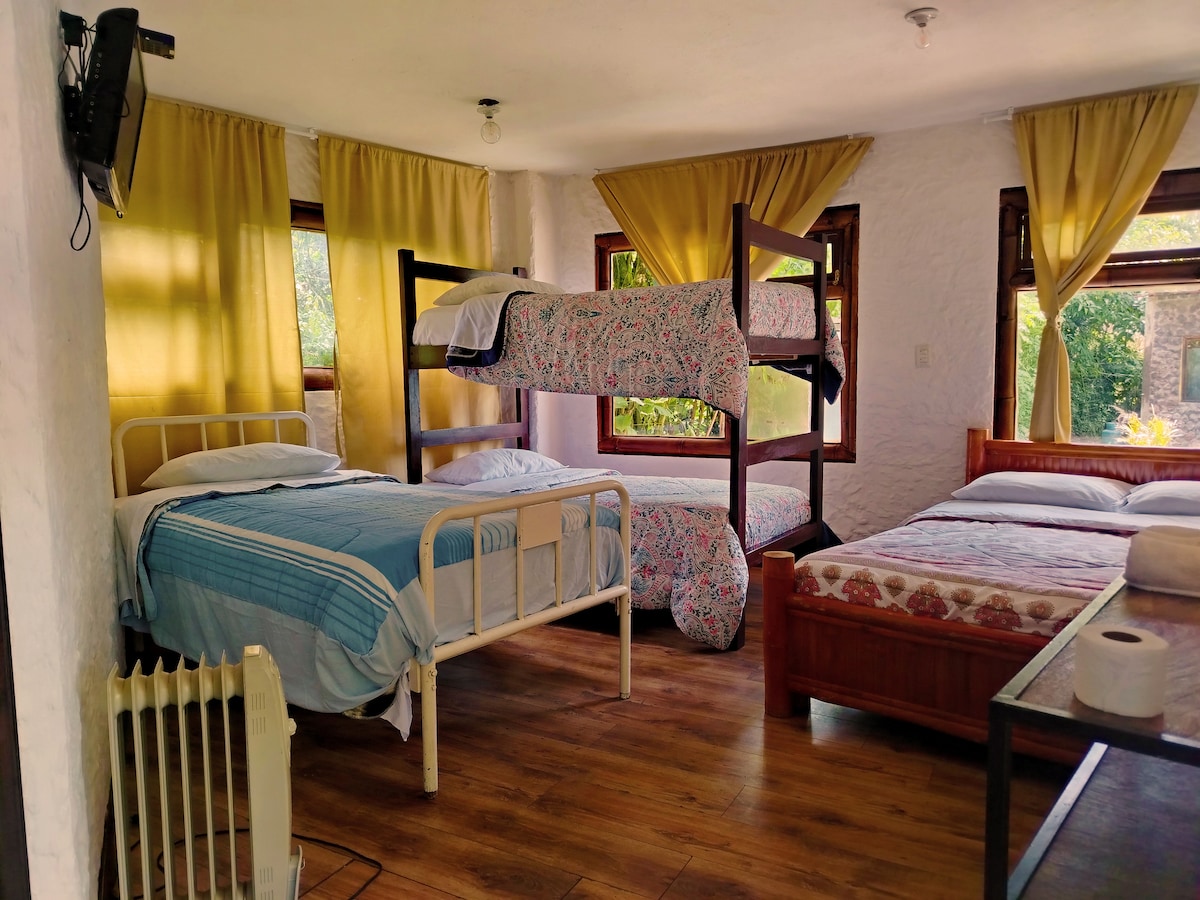 Hola, soy Malena y te invito a disfrutar de mi hermosa casa, no querrás irte de este lugar único y encantador, alejado del ruido pero cerca de atracciones para grandes y chicos. Mi espacio .. suites con baño privado, agua caliente, WIFI, parqueadero privado. Tenemos sitios comunales como BBQ, cocina y área social. Disfruta haciendo un asado - comparte con tu familia o amigos, hay juegos de mesa para todas las edades. Ven, vive la naturaleza y de la espectacular vista al volcán Tunguragüa.