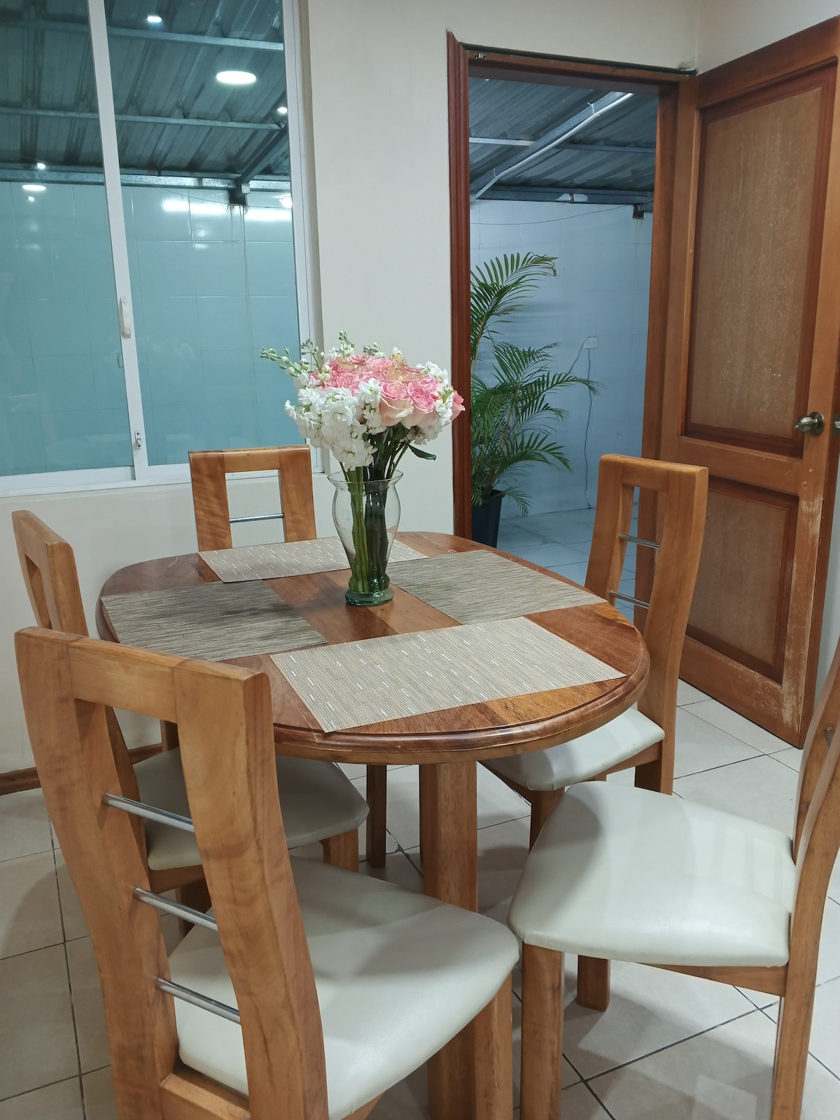 Hermoso Departamento recién remodelado de 2 dormitorios con 2 baños completos. El garaje es cómodo y amplio, puede guardar una camioneta Ford F150. Disfrute de amplios jardines y de la seguridad y tranquilidad que le ofrecemos. Está a pocos pasos del centro de la ciudad de Ambato , de la Policía, de la Plaza de Toros, del Mall de los Andes. Cercano a restaurantes, supermercado y lineas de buses y taxis. Ideal para familias o ejecutivos que se encuentren de paso por Ambato.