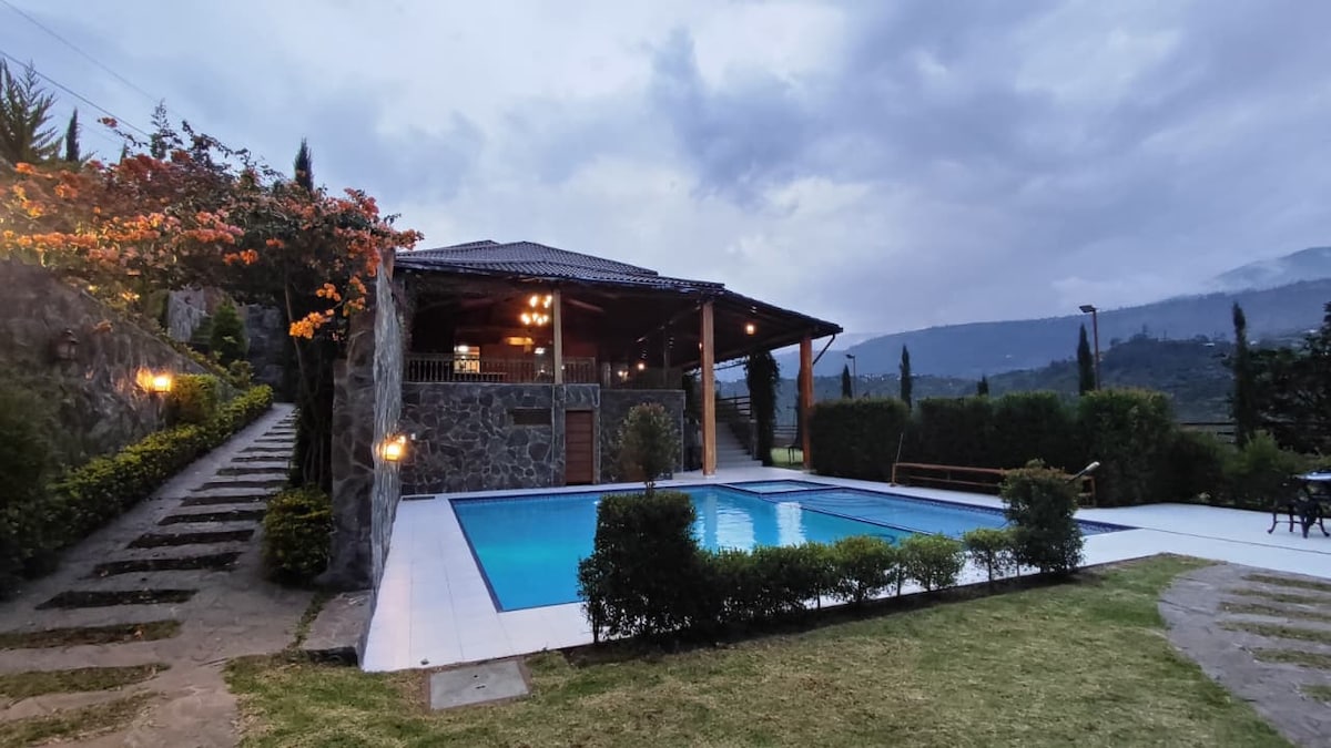 A unique house located 10 minutes from the center of town. In this house our guests will find a peaceful setting surrounded by flowers and plenty of room where you can gather with friends or family. Our amenities include: BBQ area, stoned detailed tempered pool, hot tub and parking on premises. The rooms are spacious with plenty of attention to detail for you to enjoy and feel like home. Our mission is to make sure your stay in Banos is worth remembered a life time.