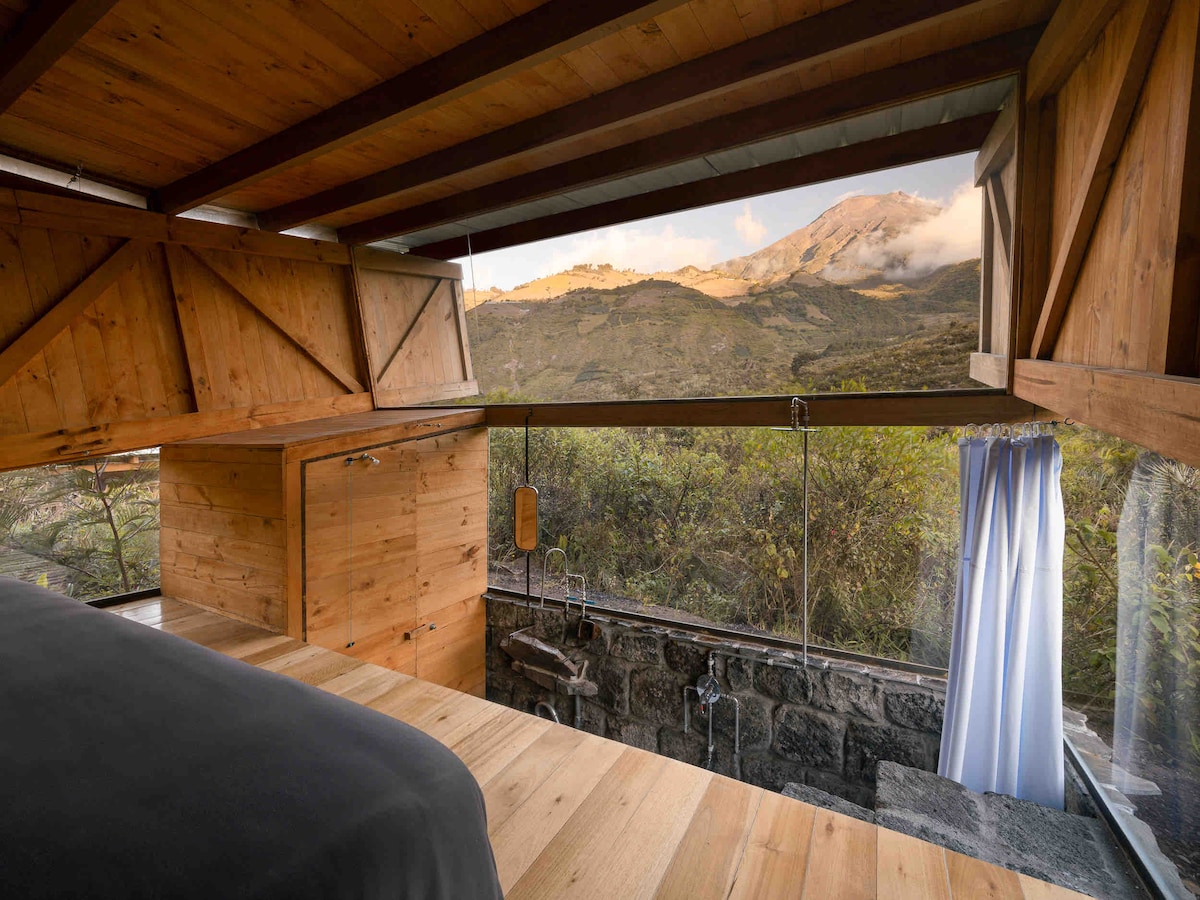 Enjoy the first hanging suites in the world at the gates of the Amazon with a magnificent view of the Tungurahua Volcano and the city A 7-minute drive from the center of Baños, you can enjoy a relaxing stay, while enjoying a delicious glass of wine purchased at the hotel and a hot bath in the jacuzzi. A spectacular place to celebrate unique moments and reconnect. Our guests are our greatest treasure and we take care of their privacy. We will wait for you !