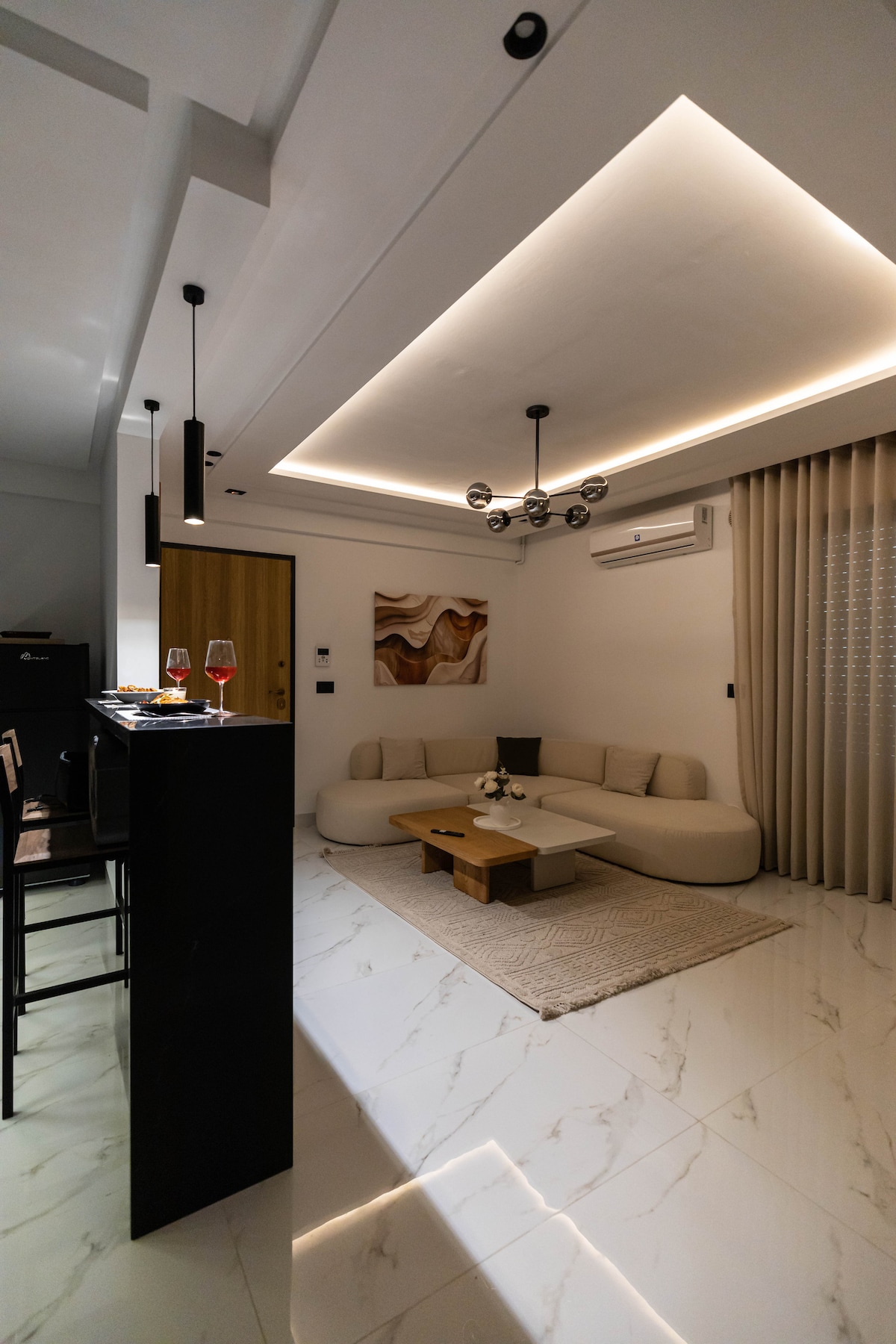 A 10 -15 min de : l’aéroport, laMarsa ,les berges du lac ,Carthage , sidi bousaid, centre ville.... Profitez d'un logement S+1 neuf et élégant de 86 m2 avec vue dégagée(dernière étage) ,très bien équipé avec une ambiance cosy et chaleureuse. Situé dans une résidence de Haut standing entre Ain Zaghouan et l'Aouina, cet appartement est proche de toutes les commodités et des principaux centres d'intérêt . Nous vous invitons à vivre une expérience unique dans un cadre convivial et spacieux.