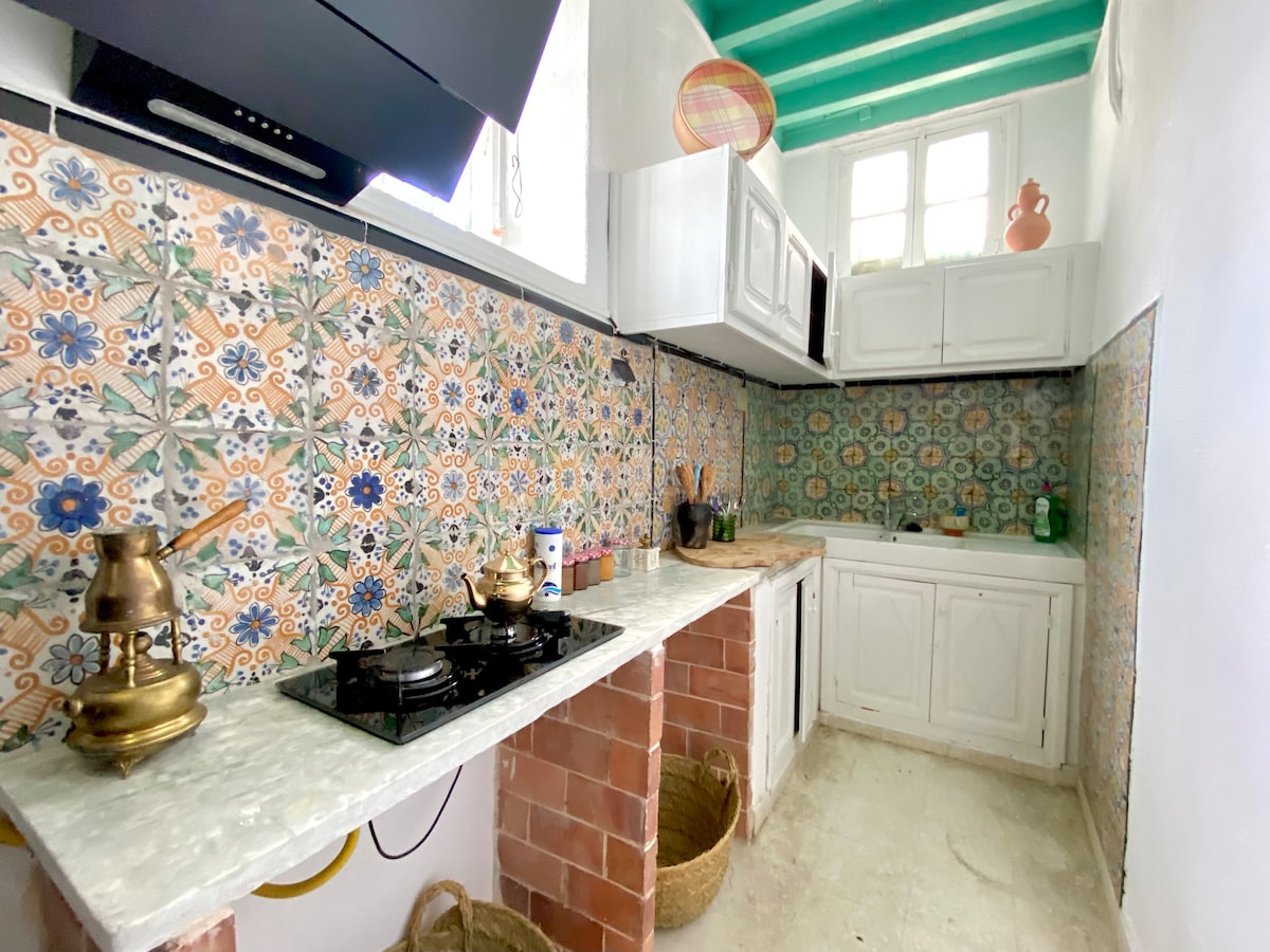 À Sidi Bou Saïd, dans un havre de silence et de lumière, ce grand lumineux S1 mêle tradition arabo-andalouse et confort moderne. Cheminée, terrasse fleurie, arches, zelliges et mobilier artisanal créent une ambiance unique. Cuisine équipée, Wi‑Fi haut débit,TV avec toutes les chaînes ,films et séries, literie soignée. En 15 min à pied : ruelles bleues, cafés, mer et saveurs locales. Idéal pour créer, se ressourcer, s’évader ou simplement respirer.