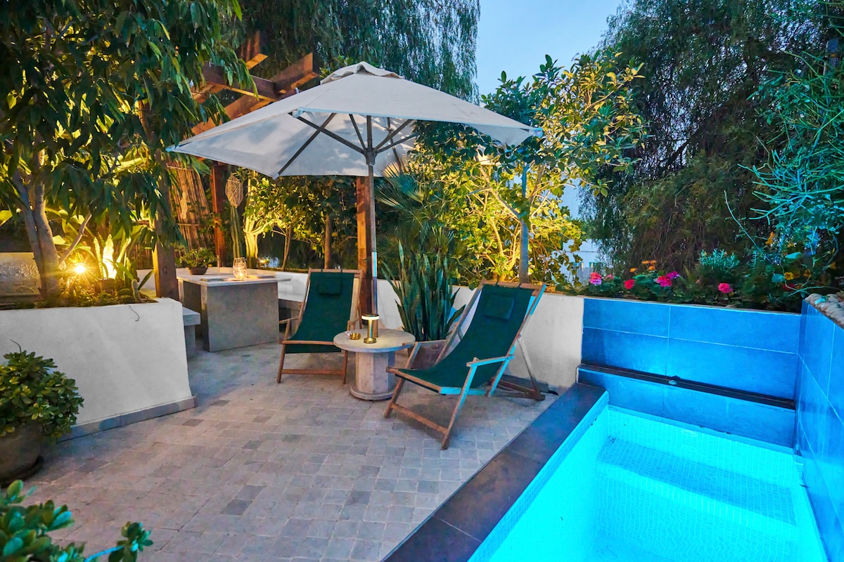 顶层公寓露台按摩浴缸-游泳池位于Soukra