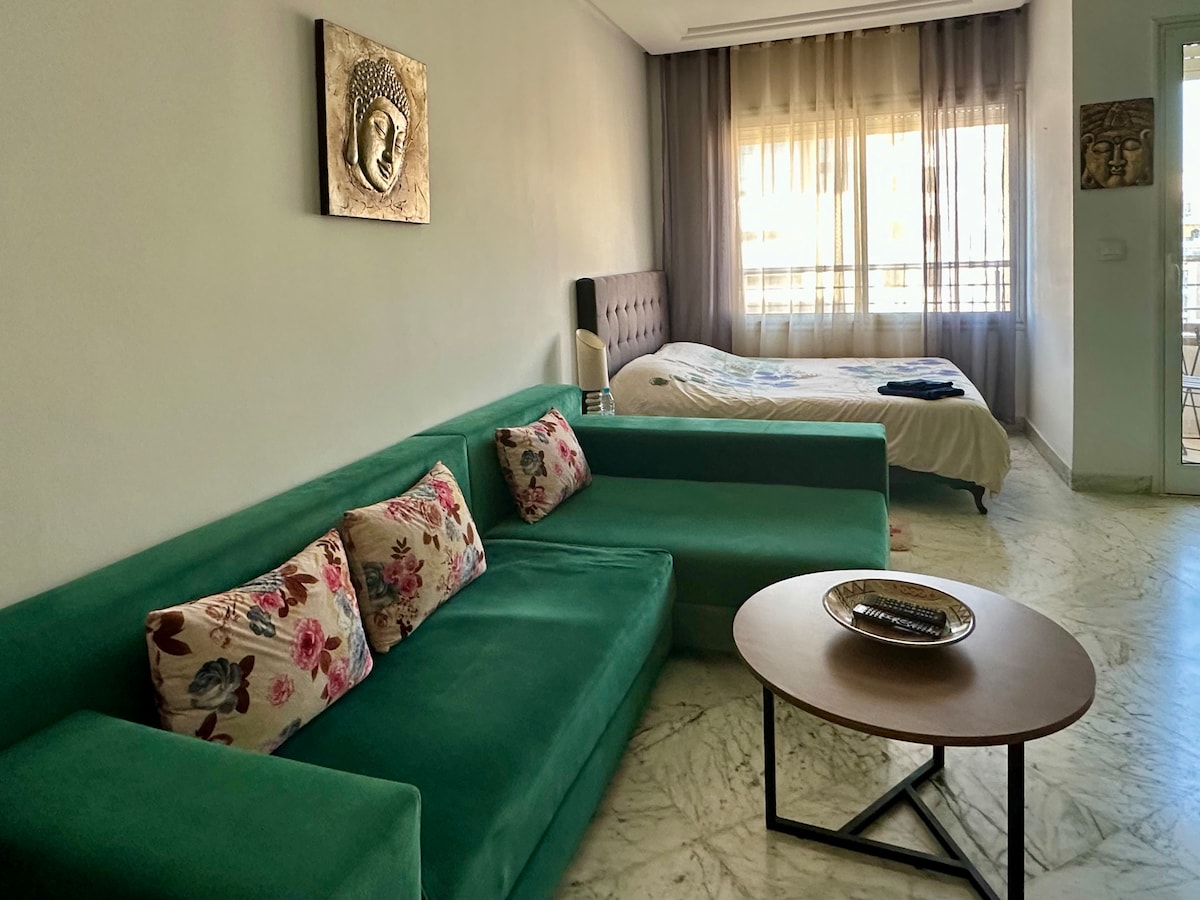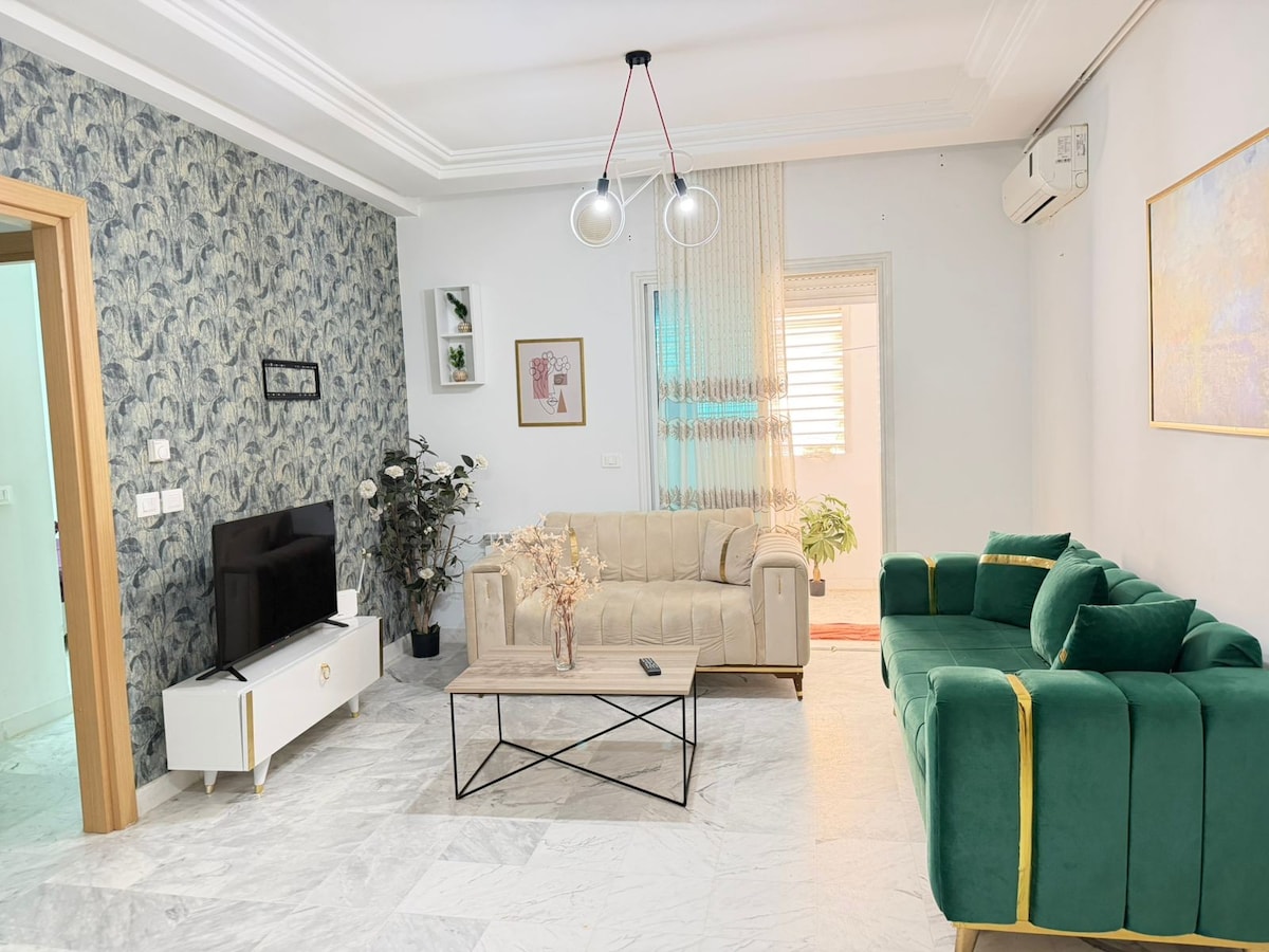 Détendez vous dans ce logement calme et cosy, luxueusement équipé et avec un décor harmonieux assurant un séjour agréable. L’appartement est situé dans une zone résidentielle calme, comprend un salon avec un canapé-lit , une chambre à coucher avec balcon et une Kitchenette bien équipée. 📍Niché à proximité de toutes les commodités: Carrefour, restaurants, cafés, lounges, salle de sport, pharmacie… L’aéroport de Tunis Carthage est à 5 minutes.