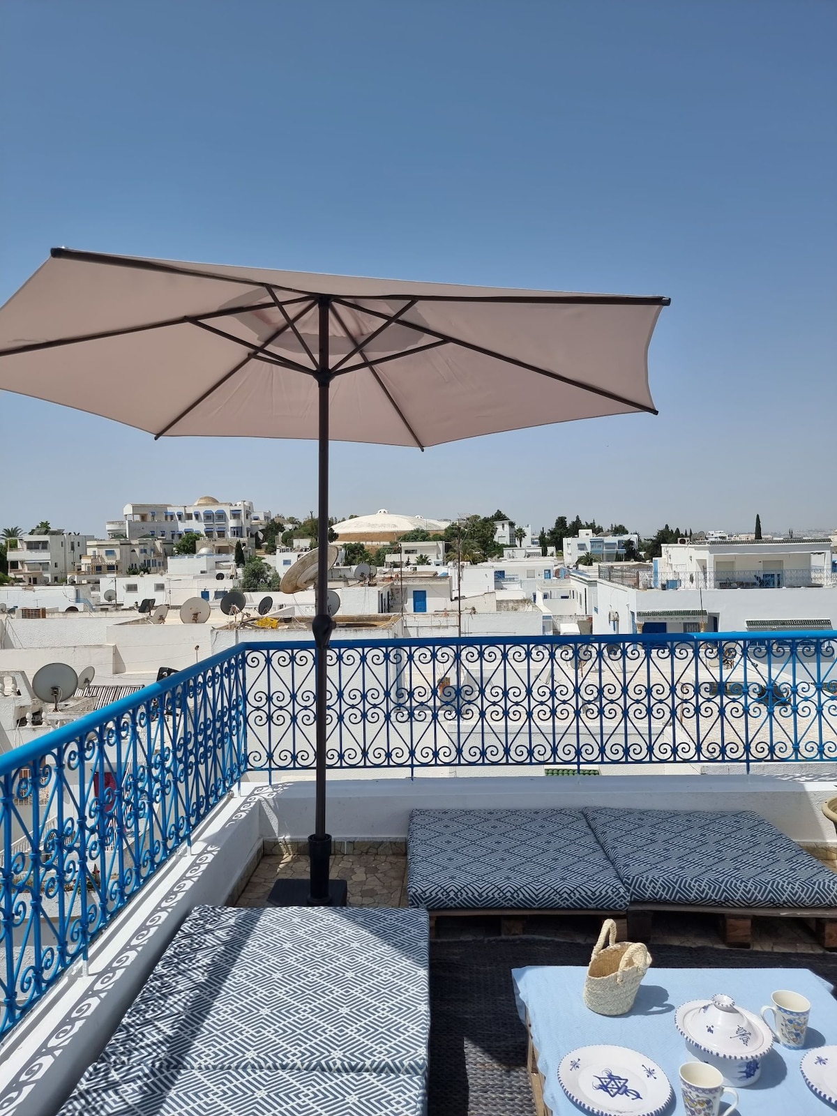 À Sidi Bou Saïd, dans un havre de silence et de lumière, ce grand lumineux S1 mêle tradition arabo-andalouse et confort moderne. Cheminée, terrasse fleurie, arches, zelliges et mobilier artisanal créent une ambiance unique. Cuisine équipée, Wi‑Fi haut débit,TV avec toutes les chaînes ,films et séries, literie soignée. En 15 min à pied : ruelles bleues, cafés, mer et saveurs locales. Idéal pour créer, se ressourcer, s’évader ou simplement respirer.