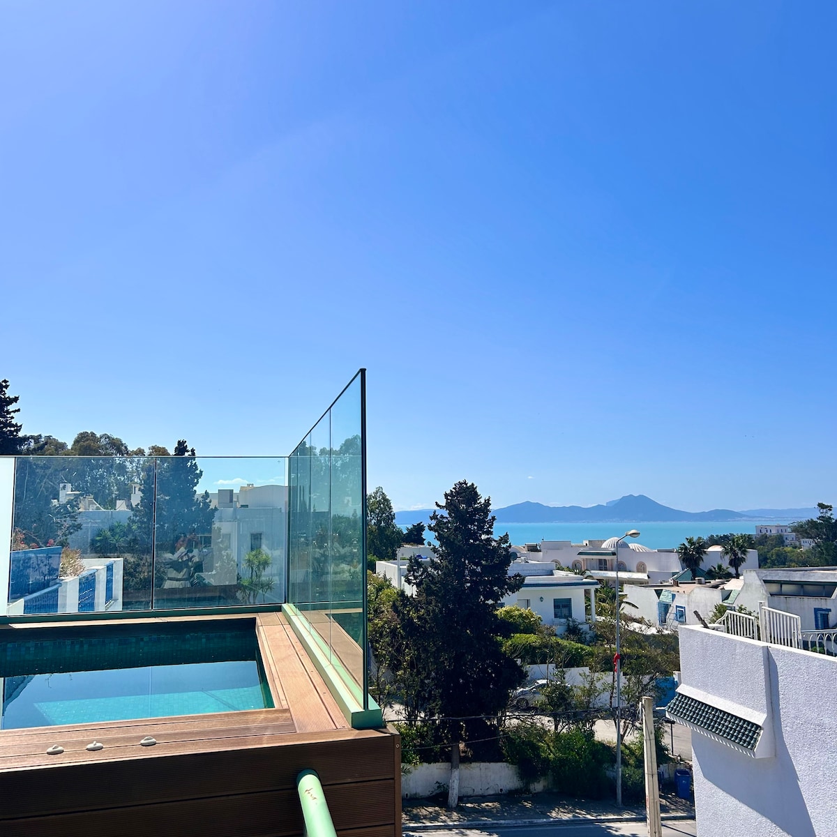 This accommodation has a truly unique style. Entirely built of wood, it offers a panoramic view of Sidi Bou Said and the nearby cities. The apartment is new, very comfortable, and features a magnificent panoramic terrace with a swimming pool. Located just a few minutes' walk from the village, it is close to all amenities. The bedroom offers a beautiful view of the city and the sea. This accommodation is unique, and you will have an excellent stay there