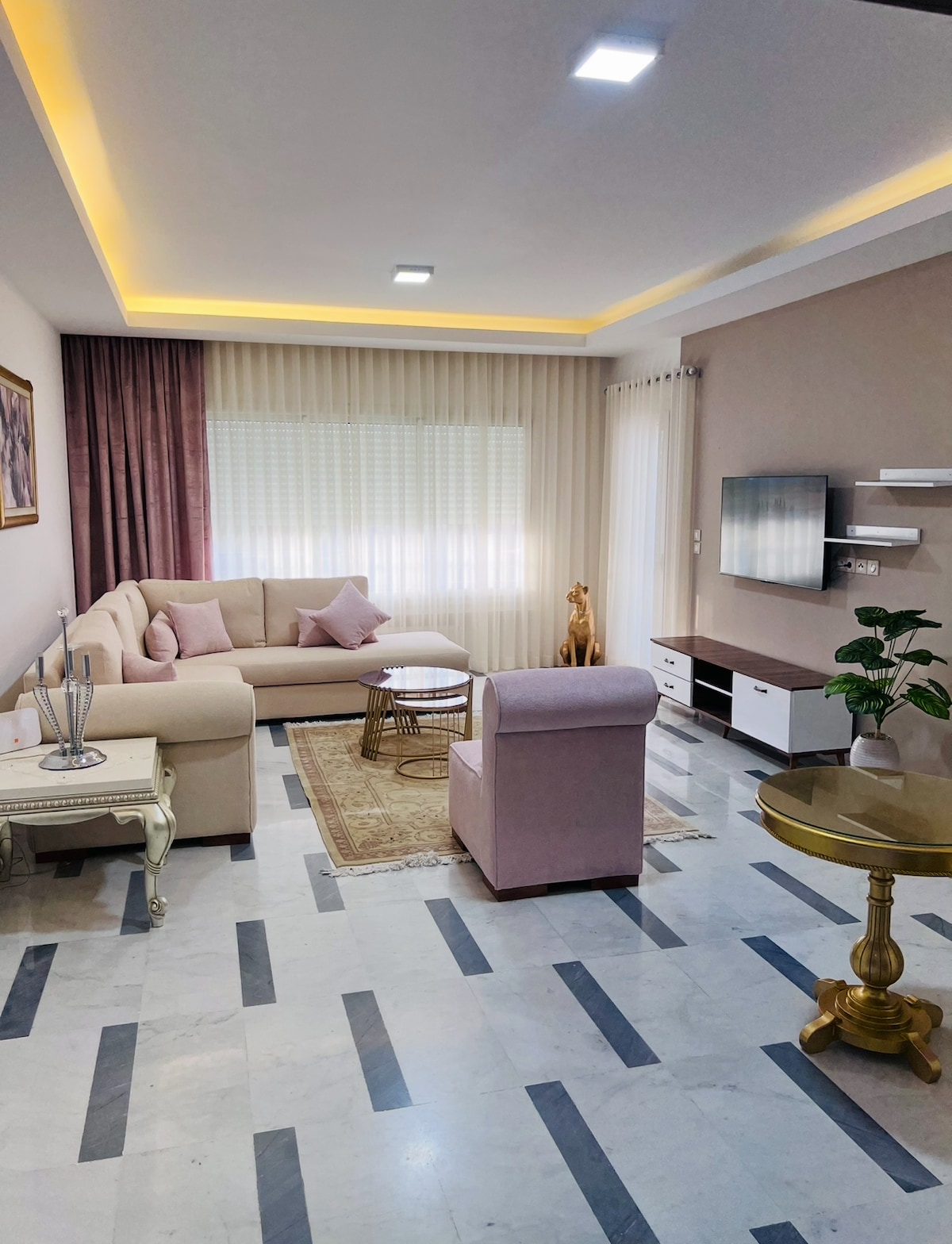 Un intérieur qui célèbre l’authenticité et qui permet d’avoir un espace de vie unique Un appart décoré avec des objets artisanaux qui racontent une histoire, chaque pièce artisanale contribue à l’originalité de notre espace. Appart situé aux Jardins de Carthage à 15mn de l’aéroport 5mn du lac 2 et du centre commercial Carrefour la Marsa, proche de toutes commodités, la Marsa, Carthage, la Goulette Appart dispose d’une place de parking au sous-sol, fibre optique, smart TV, un coin bureau