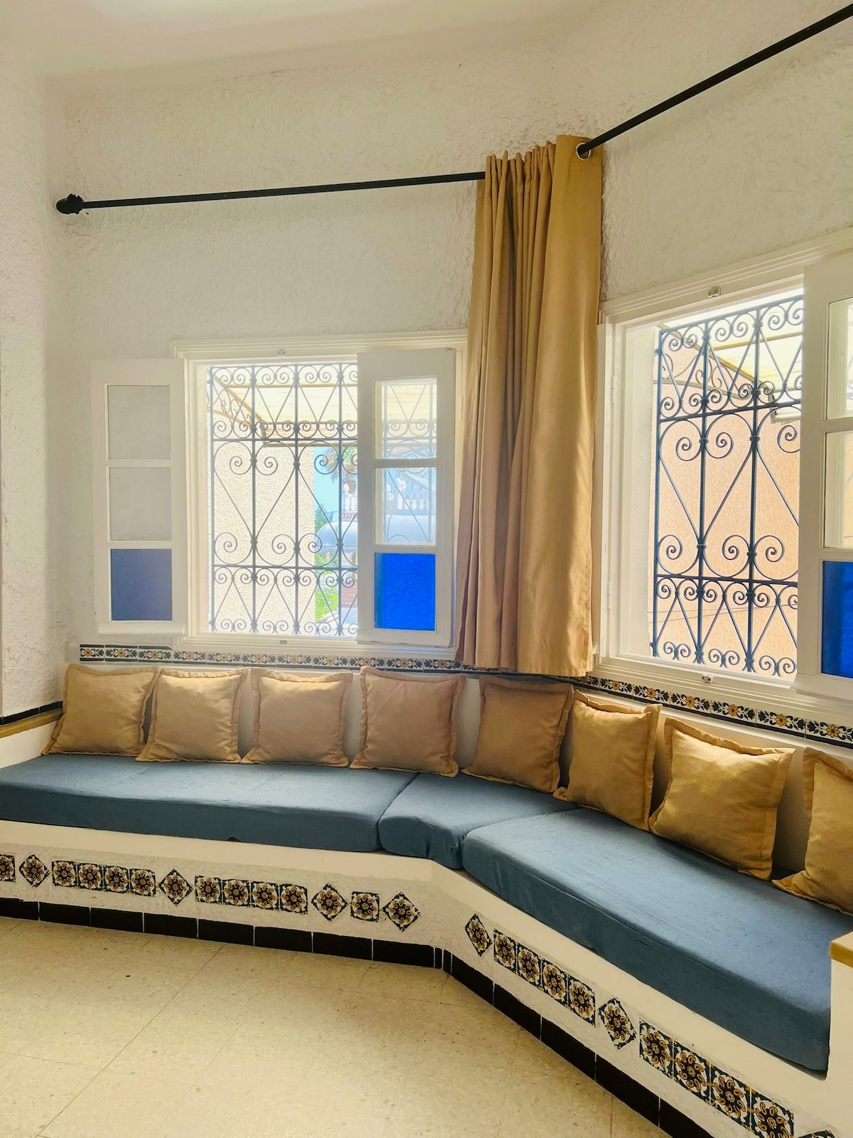 Vivez une expérience unique en bord de mer à La Marsa en vous réveillant avec le bruit des vagues et en contemplant une vue imprenable depuis votre terrasse. Pour vos baignades, vous disposez d'un accès directe vers la plage en bas des escaliers ainsi que de douches extérieures. Située à 3 kilomètres de Sidi Bou Said et à quelques kilomètres du Site archéologique de Carthage , notre maisonnette vous offrira des journées calmes et ensoleillées à proximité de toutes commodités .