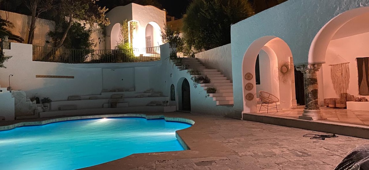 STUDIO CLIMATISÉ ❄️ autonome dans le jardin de ART Villa, à 50 mt de la mer en plein cœur ❤️ de Carthage et 5min en taxi de Sidi Bou Saïd. Écrin méditerranéen entre histoire et modernité. Plongez dans votre piscine ou dans les eux cristallines de la mer méditerranéenne, offrez vous une balade en paddle, parcourez à vélo le port antique de Carthage. Votre choix : bronzage insolent, escapade culturelle ou farniente sous le soleil tunisien. La gare du train historique TGM ou les taxis sont à 5min.