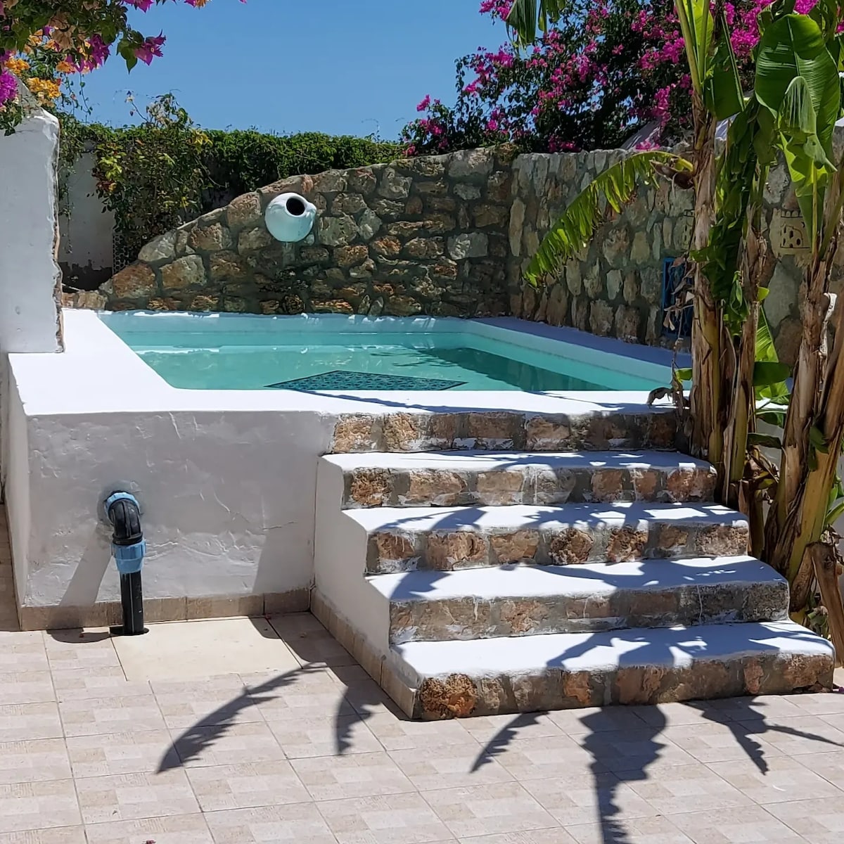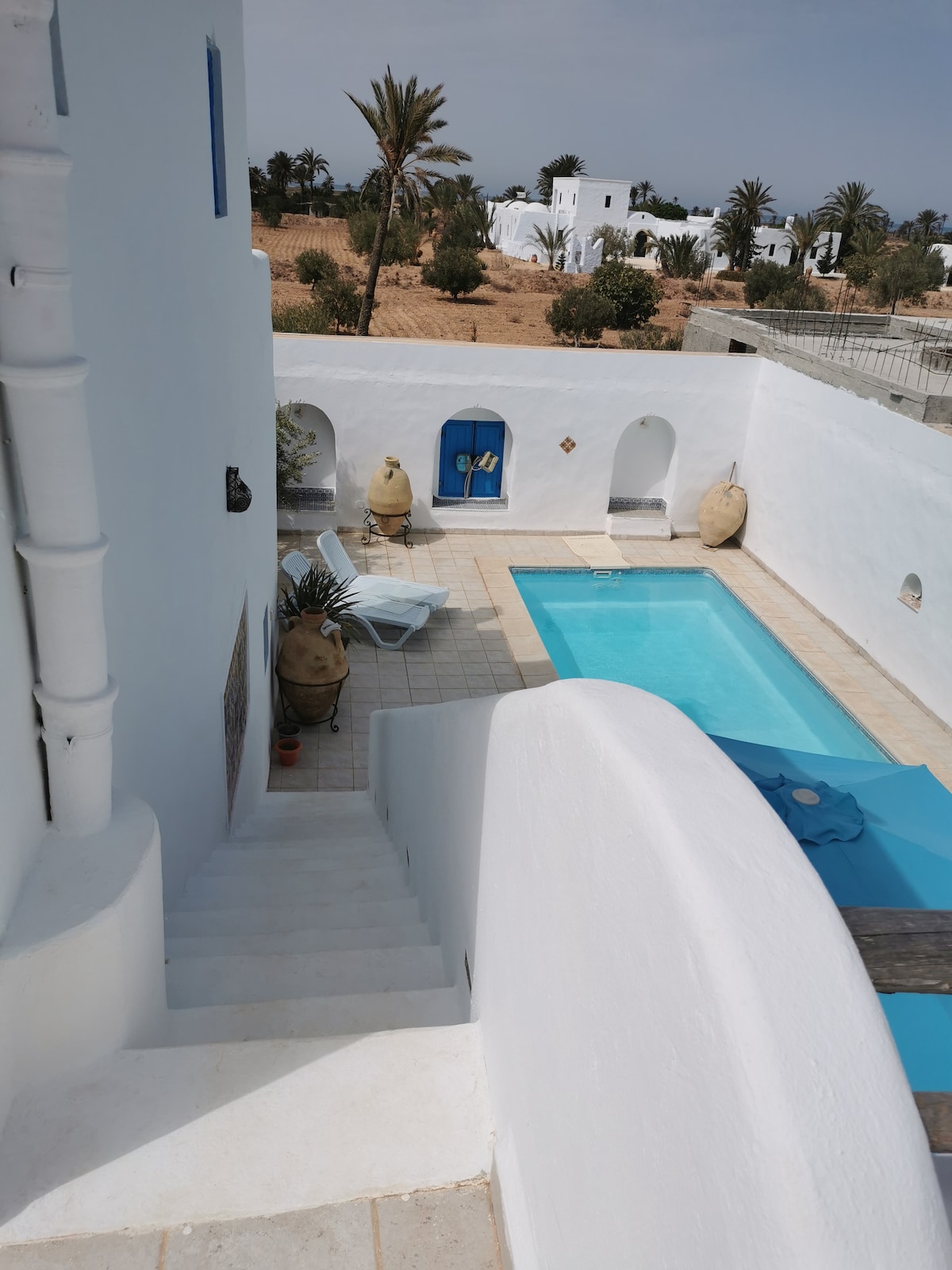 Bungalow d'architecture traditionnelle situé à la campagne, à 1,4 km de la plage et aux abords de Tazarka, au cap Bon, hors des zones touristiques. Il offre le confort de base dans une ambiance relaxante, et la possibilité de se baigner dans l'eau douce d'un grand bassin à la belle saison. Convient aux personnes aimant la nature et la simplicité !