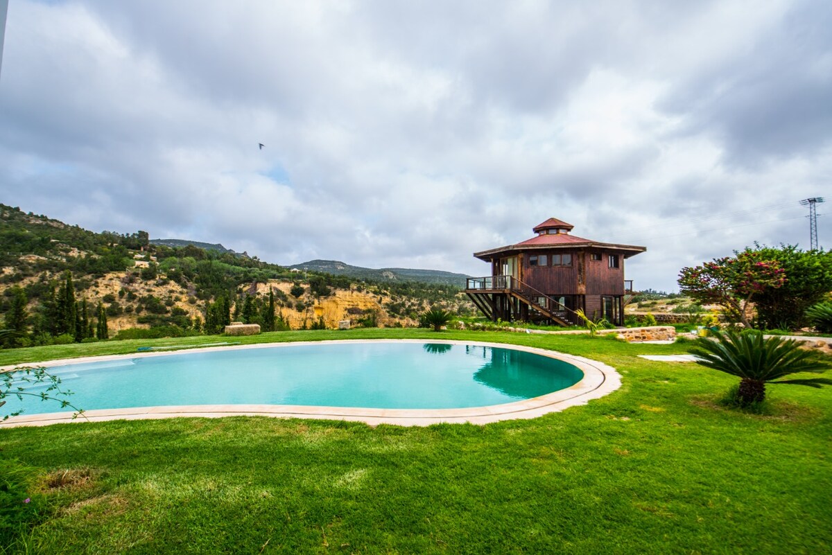 Wunderschönes, 2 etagige Holzhaus das sich in absolut ruhige Lage auf einem Grundstück von ca. 7 ha mit herrlicher Aussicht befindet. Es ist ideal für eine kleine Gruppe von Freunden sowie für ein Paar oder eine Familie. Ideal für stressgeplagte Ruhesuchende. Das Haus liegt an einem kleinen Badesee mit Strand und Insel. Entfernung zu Strand und Stadtmitte Hammamet ca.13 km. Bei Vorbestellung können Einkäufe von Lebensmittel übernommen werden. Wir haben freilaufende Tiere
