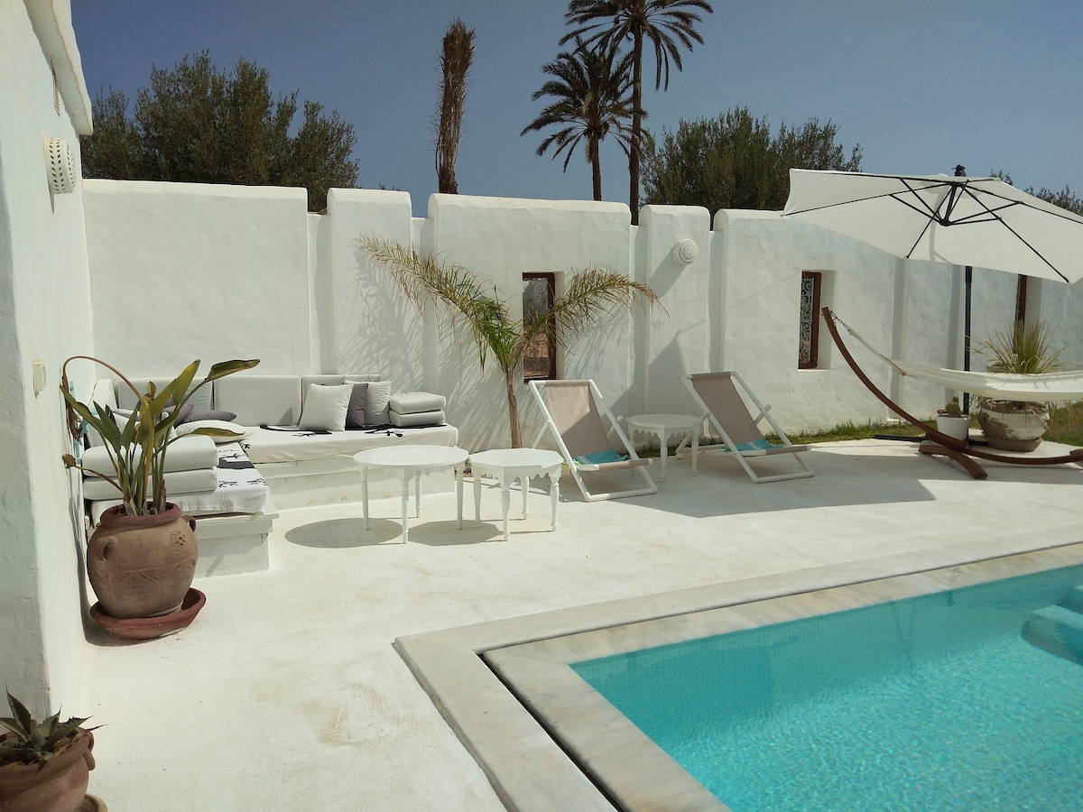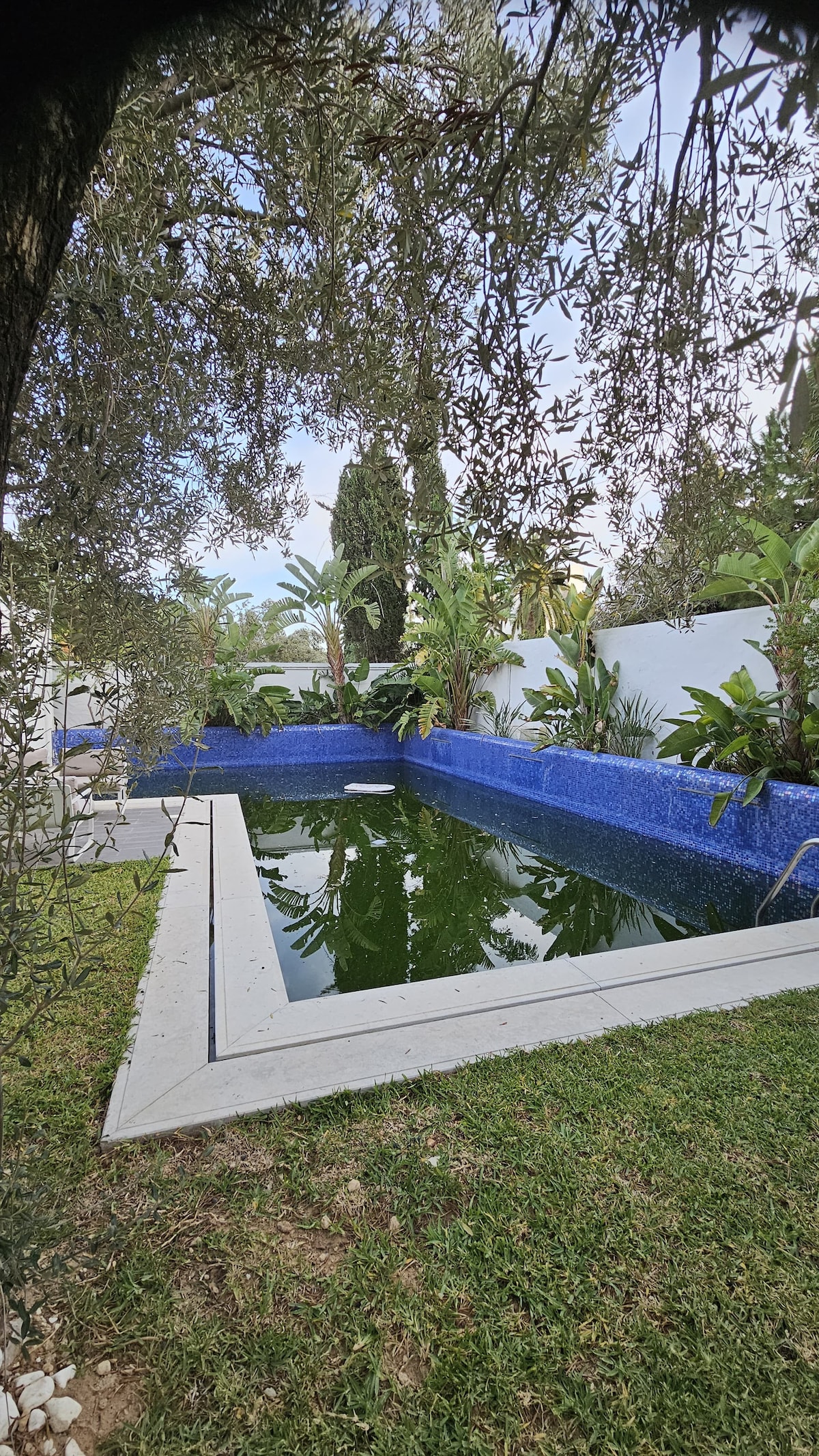 Dar Mima, a luxurious villa in the heart of Djerba, is a testament to craftsmanship and elegance. With a blend of Djerbian tradition and modern flair, it offers a serene escape just 700 meters from the beach and 100 meters from the golf place. In minutes, guests can reach vibrant discos, the Aqua Park, and more. Experience the charm of Dar Mima and uncover the essence of Djerba.🌴