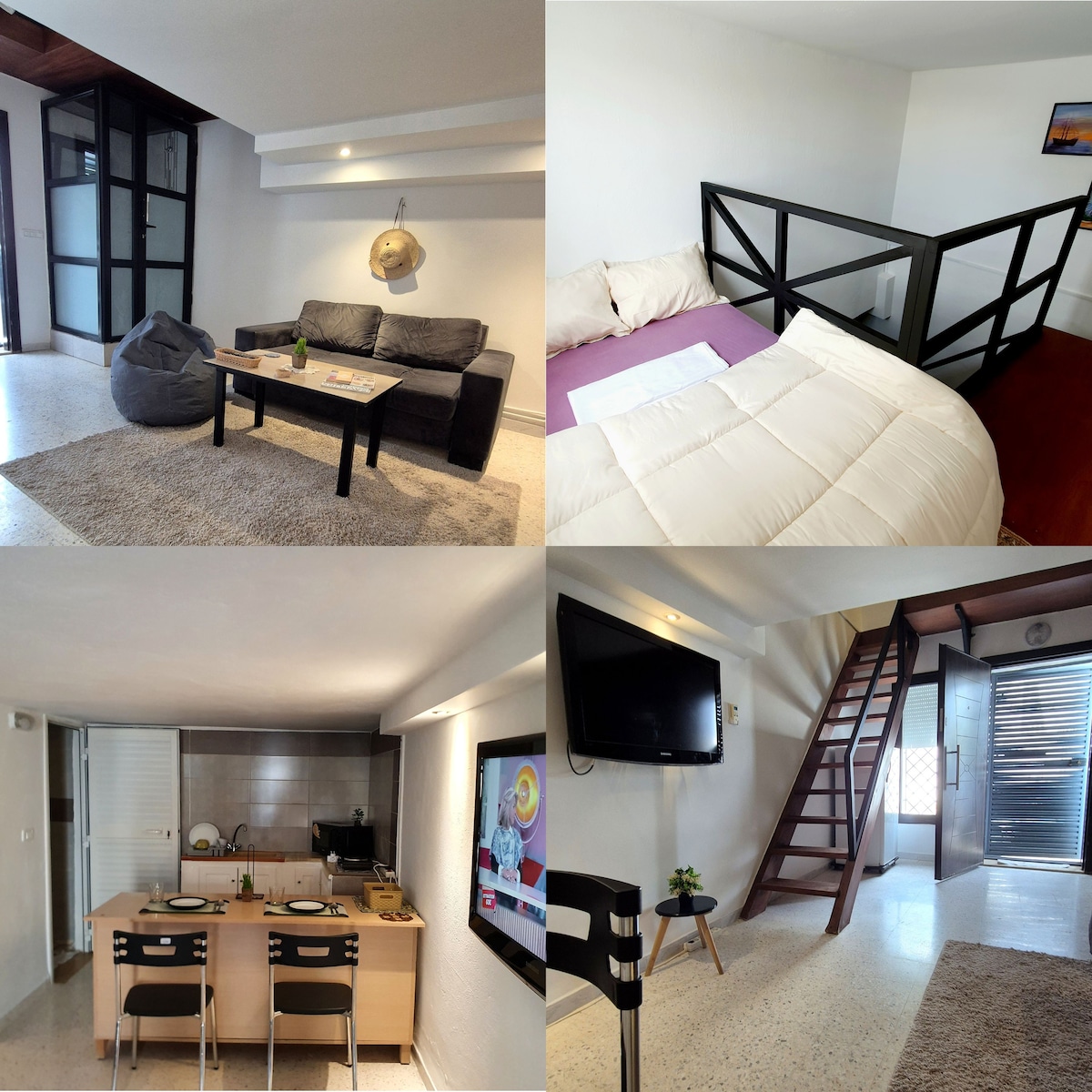 Le loft est situé dans un quartier résidentiel calme à 1mn à pieds de la plage avec parasol privé .il vient d être construit. Il y a une chambre dotée d un grand lit et un fauteuil convertible 1 place .une salle de douche et une grande terrasse ou on trouve une cuisine bien équipée et abritée . Meuble de jardin et un grand parasol et un spa à bulle . Le voyageur à un accès direct à la plage. Remarque : le spa est disponible à partir du 15 mai.