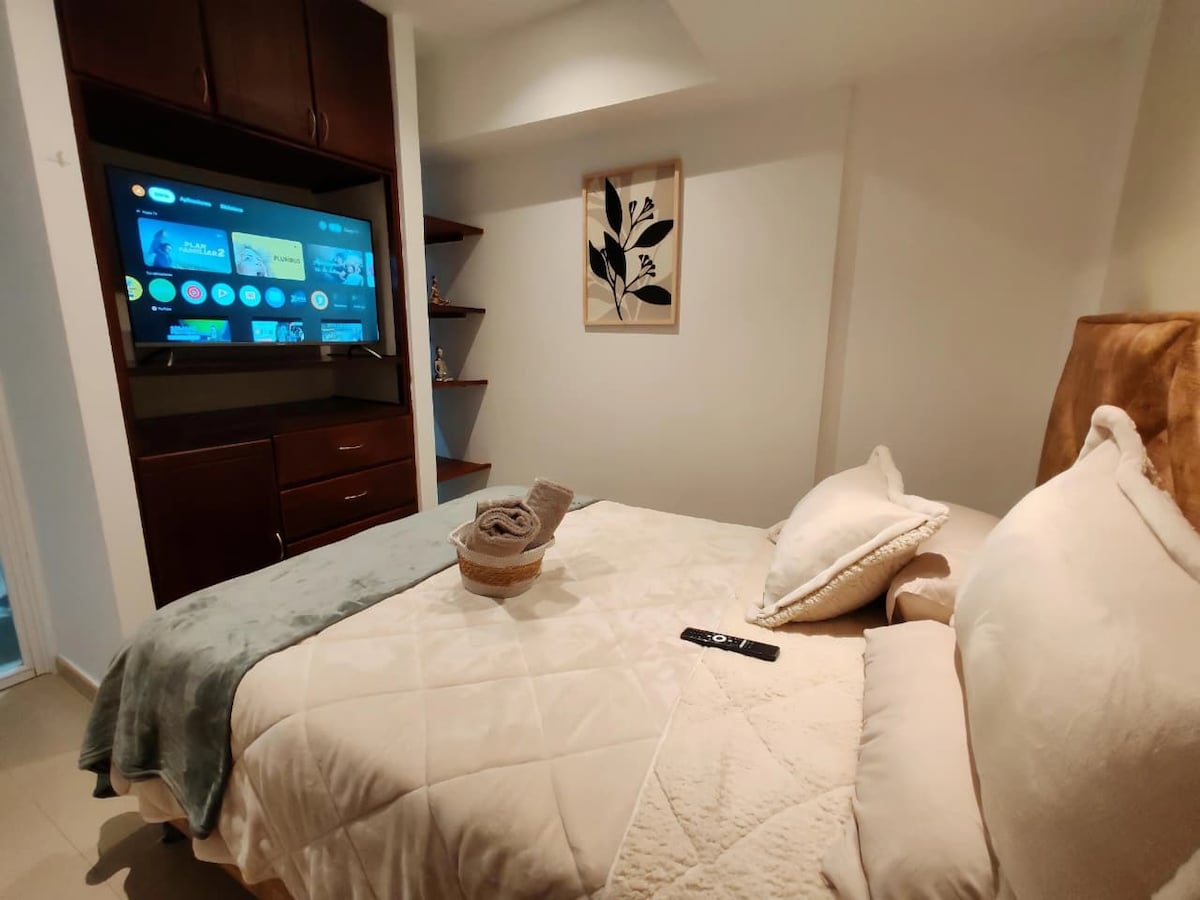 Ideal para 1 persona, pero como la cama es semi-doble también se renta para 2 personas. Este acogedor apartamento mantiene la misma calidad y atención al detalle que caracteriza a todo el complejo. Disfruta del confort en cada detalle y vive como mereces. - Pensado para profesionales que viajan solos o en pareja. - Ideal para largas estadías o viajes de negocios. - Personaliza tu experiencia para sentirte como en casa. ¡ Bienvenido a tu hogar! Disfruta de este ambiente único y relajante.