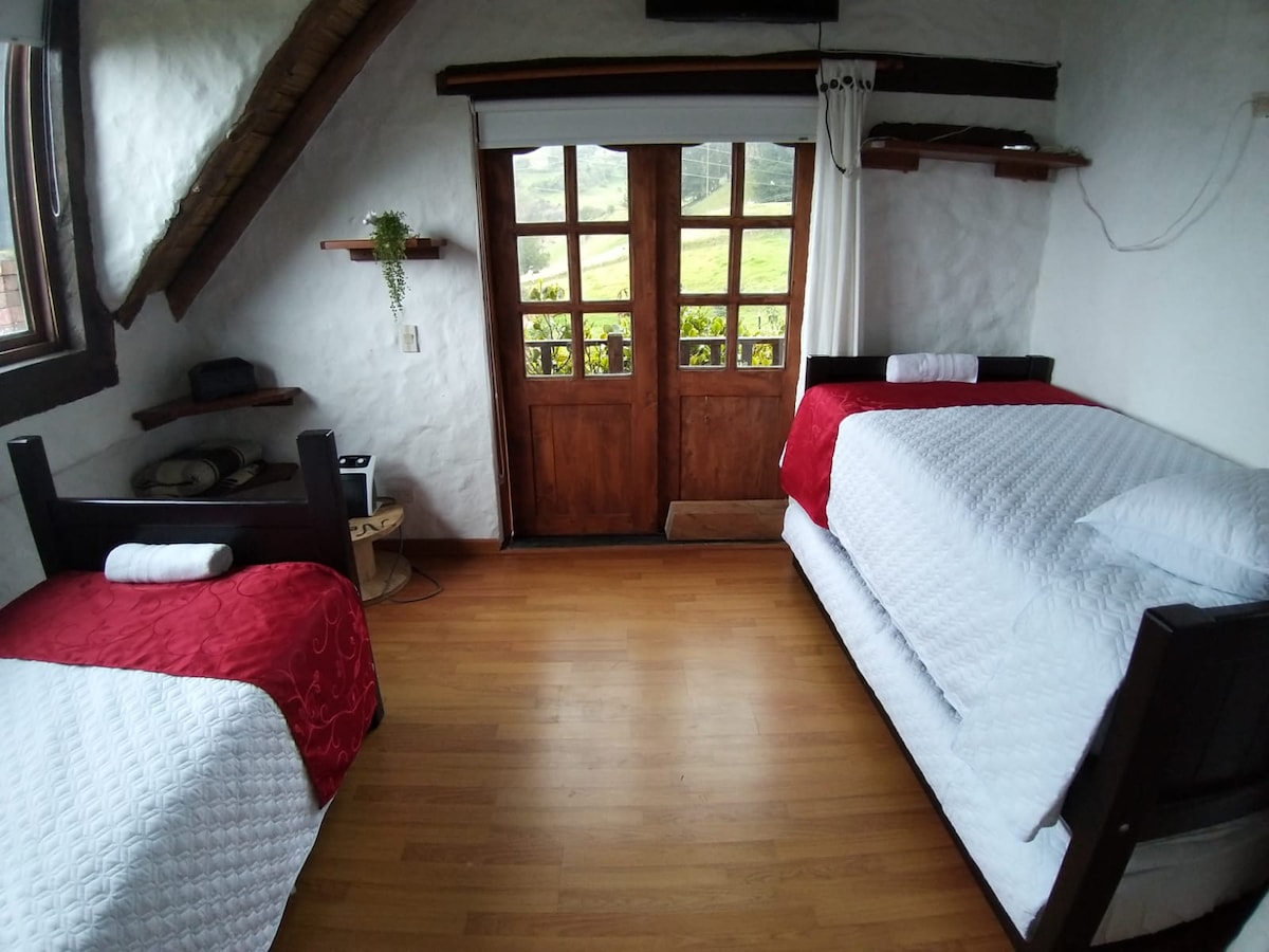 Casa de campo amplia, declarada patrimonio con patio interior, luz, calma, acogedora, 5 cuartos, cocina , dos comedores, dos salas, TV con cable, Barbicui y fogatas, caminatas, senderismo, agua caliente, WiFi, billar, jacussi, pin pong, juegos de mesa, Primer piso, cuarto con camarotes semidoble, cama sencilla y baño Segundo piso. 1.- Cama doble y dos camarotes sencillos , baño 2.-Camarote dos camas sencillas y una semidoble baño 3.- Cama semidoble y cama sencilla, 4.- Cama doble baño