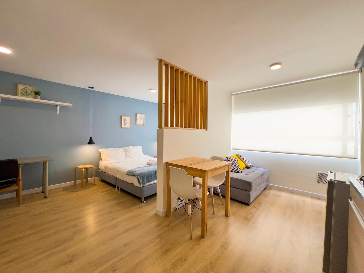 Disfruta de este aparta estudio tranquilo, cómodo y bien equipado, ideal para que tengas una buena estadía. Ubicado a pocas cuadras del centro de la ciudad, en un lugar bastante tranquilo y de fácil acceso desde los centros comerciales y universidades. Cerca de rutas de transporte público y de comercio básico (droguería, panadería, supermercado, restaurante, salón de belleza, etc) Frente al edificio tenemos una amplia zona verde, segura y tranquila. Bienvenidos!!