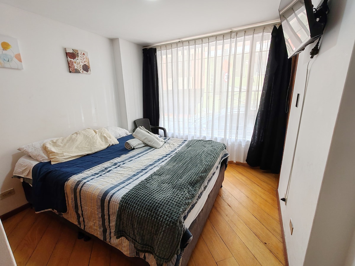 Alojamiento cercano a centros comerciales del norte de la ciudad, facilidad de transporte, un espacio amplio (72m2) con vista panorámica. Amoblado con decoración artesanal de Boyacá. Agua caliente. WiFi, nevera y TV
