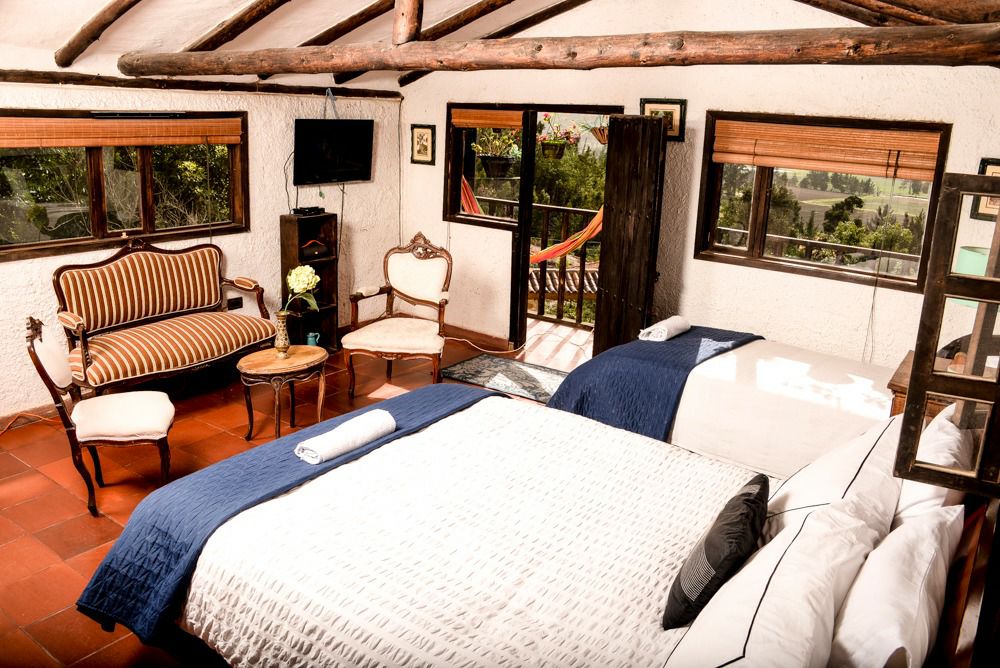 Espacio muy agradable a solo 12 minutos de Tunja, amplio, cómodo, tranquilo, cuenta con animales, cerdos mini pigs, gatos, perros y hermosos caballos. Tiene 4 baños todos con agua caliente. Sauna. Cocina tipo americana con su nevecón y vajilla. 3 camas kings, 2 dobles y 4 sofá camas. Parqueadero incluido. Hermosos jardines. Chimenea y espacios de interacción. 2 lavadoras y cuarto de ropas. Espacio de trabajo, wifi, televisión y vigilancia. después de 5 visitantes, el hospedaje es exclusivo.