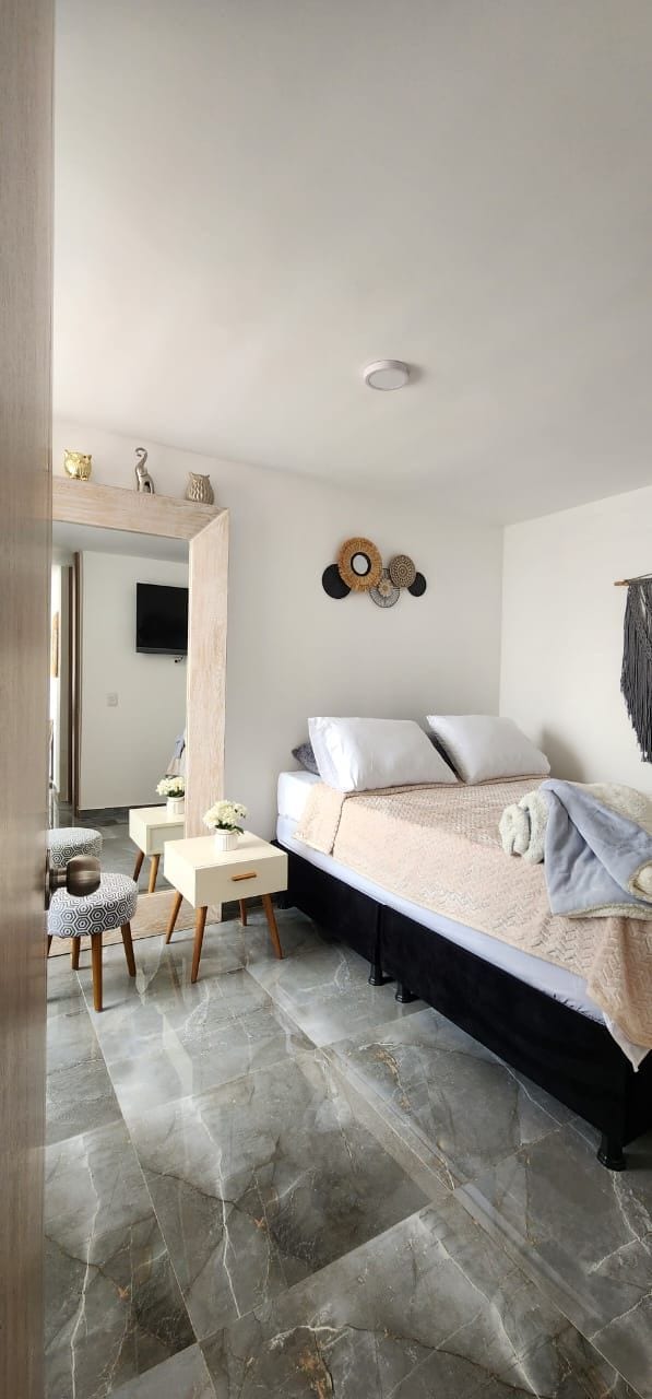 Disfruta de una estadía cómoda en este acogedor apartamento de 2 habitaciones, ideal para familias, parejas, grupos pequeños y tus mascotas. Ubicado en el sur de Bogotá, a 5 minutos a pie del TransMilenio Paseo Madelena y con fácil acceso a la Av. Villavicencio. Cuenta con sala con TV y sofá cama, baño completo, cocina funcional con nevera y habitación principal con TV. En el conjunto hay minimarket, y cerca supermercados, cafeterías, restaurantes y centros comerciales. Pet friendly y seguro.