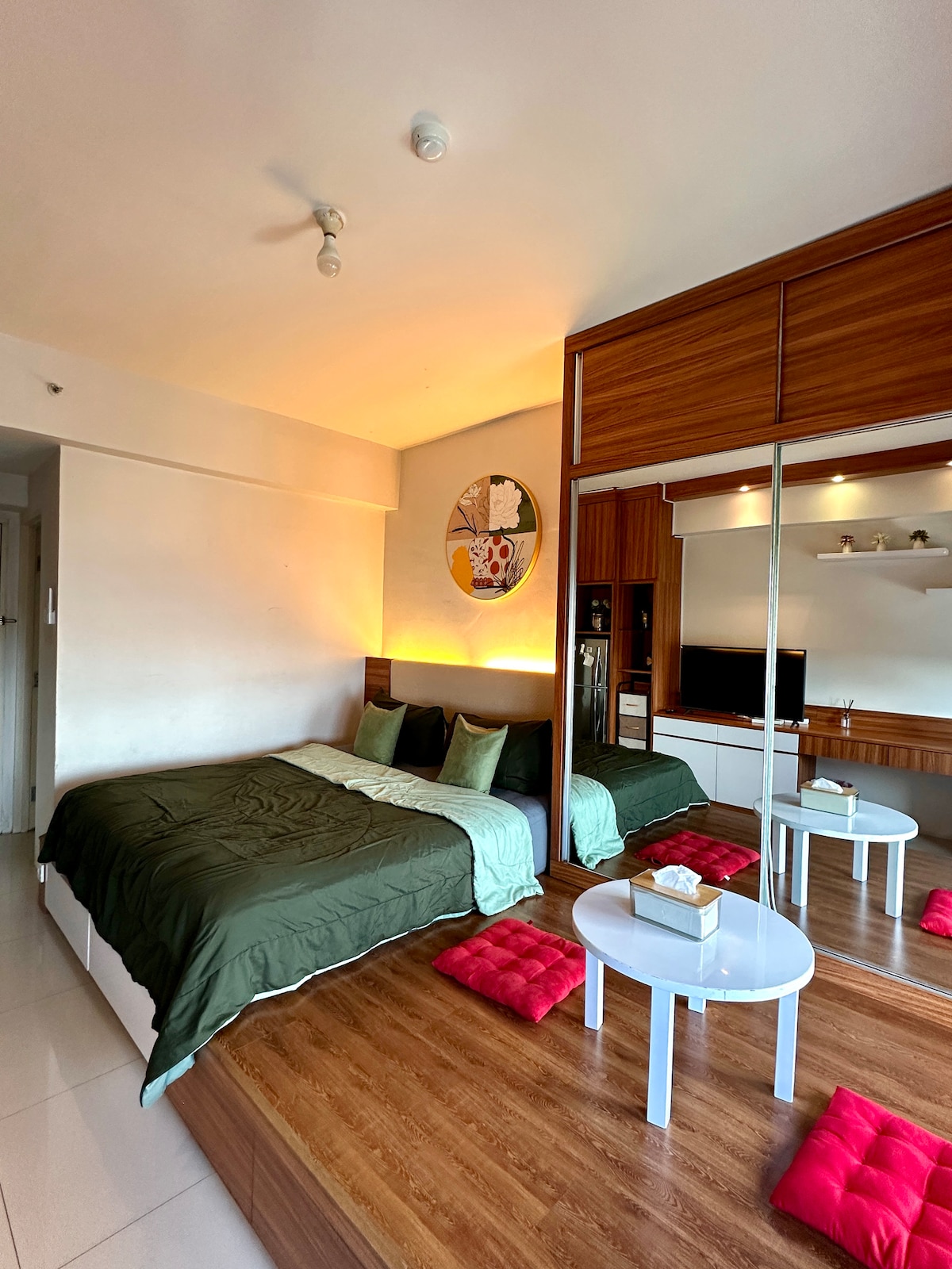 Our room is in Tanglin Apartment with direct access to Pakuwon Mall, the biggest shopping mall in Surabaya. Our room initially designed for private use, so it’s very homey and stylish. Located in podium floor so the space is bigger than most of other studio room [ 29m²]. Gym, pool, and free parking access is available for all guest. Check in and check out time can be flexible as long as there is no other guest coming or staying before. Enjoy your stay!