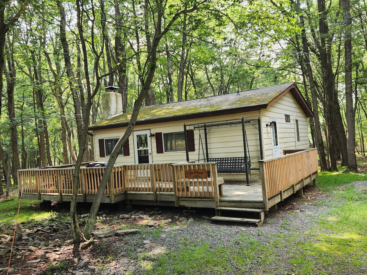 Updated Cozy Cabin 3 Bedrooms 1.5 Baths on a large private lot. Easy access to Lakes, Parks, Ski Resorts, Golfing, Hiking, White Water Rafting, Biking, ATV Trails and more! Minutes from Jack Frost and Big Boulder mountains for winter rec. In the summer, spend a day boating, fishing, make a splash at Kalahari Waterpark, or satisfy your need for speed at the Pocono Raceway! Located in the Camelot Forest Community. Our cabin is the perfect spot for your next adventure in the Poconos Mountains.