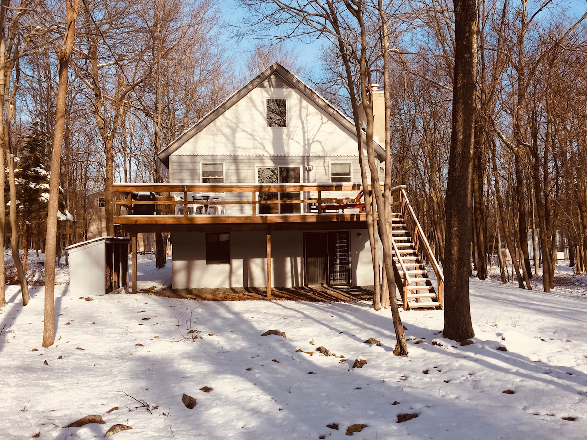 Welcome to Johnny's by the Lake! Escape to the Poconos with this private home steps to the lake + beach. Relax on either the front deck or by the secluded hot tub out back. Lounge in the sun drenched, open concept living and dining room. Spend twilight enjoying the four season sunroom that provides easy access to private wooded grounds and fire pit. The 3 bedroom, 2 bath house comes fully stocked with sheets, towels, and cozy blankets. Minimum rental age 25.