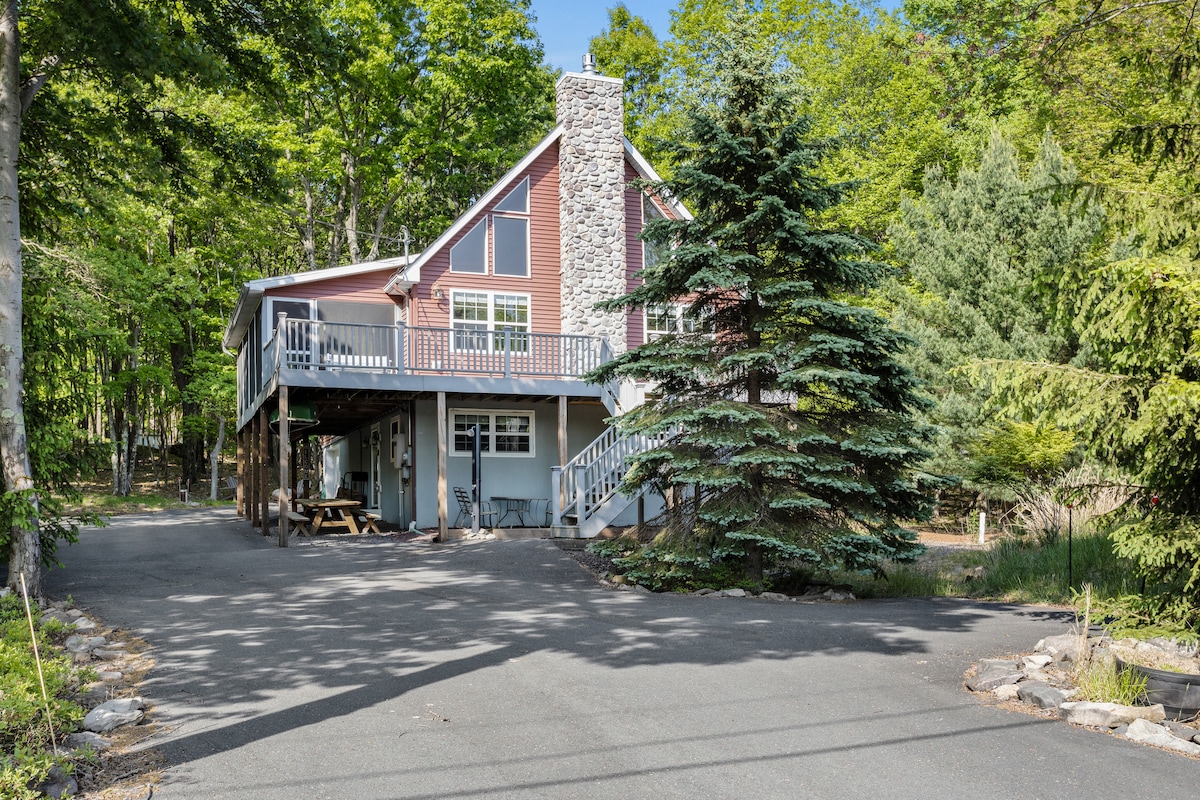 现代波科诺度假屋:泳池,靠近滑雪和徒步旅行