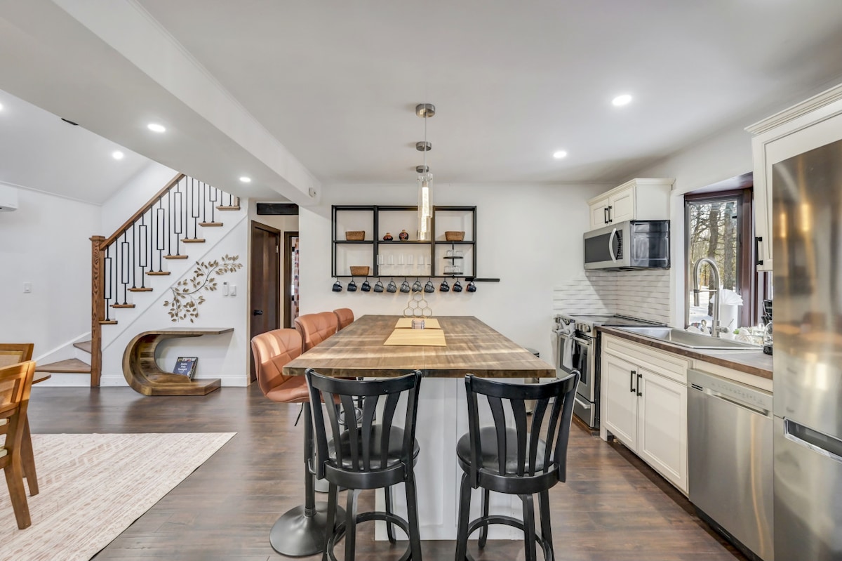 Escape the hustle of the big city in style at this picture-perfect open floor plan Modern Ranch Home, nestled in nature surrounded by 1.5 acres of breathtaking native white birch trees. The Ranch house offers a one-of-a-kind modern rustic aesthetic from the pro design team at Restoration Hardware. Full kitchen, king-size master bedroom, indoor fireplace, indoor & outdoor dining area, outdoor lounge, rustic chiminea-style firepit. There’s something for the whole family (including furry friends).