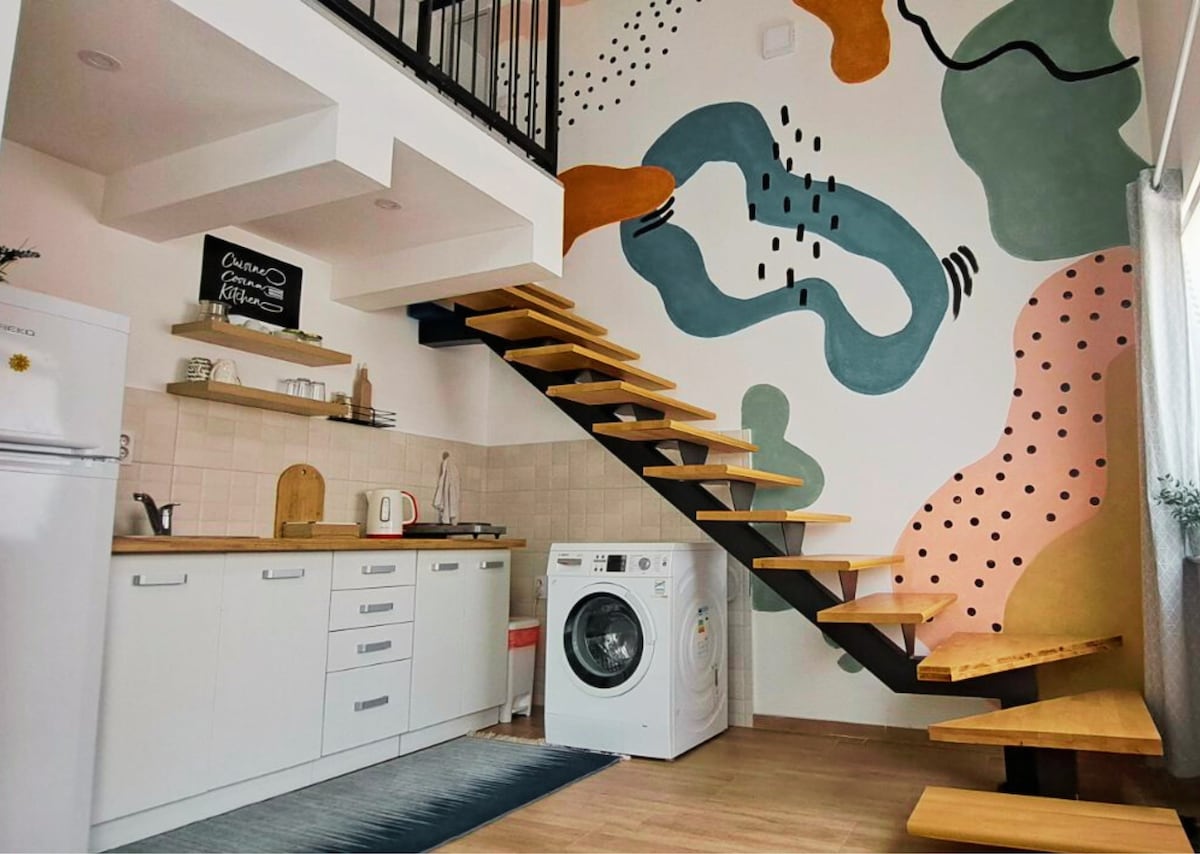 Step into an artistic apartment where art and relaxation meet. It features an infrared sauna with soothing lighting, calming music, and artistic details. A fully equipped kitchen, a large smart LG TV, and air conditioning ensure comfort. Located 6 km from the city center and 2 km from the airport, it’s surrounded by nature, a lake, and charming restaurants. The entrance is self-service with a code, and you can check in at any time of the day or night. :) Enjoy your artistic escape!