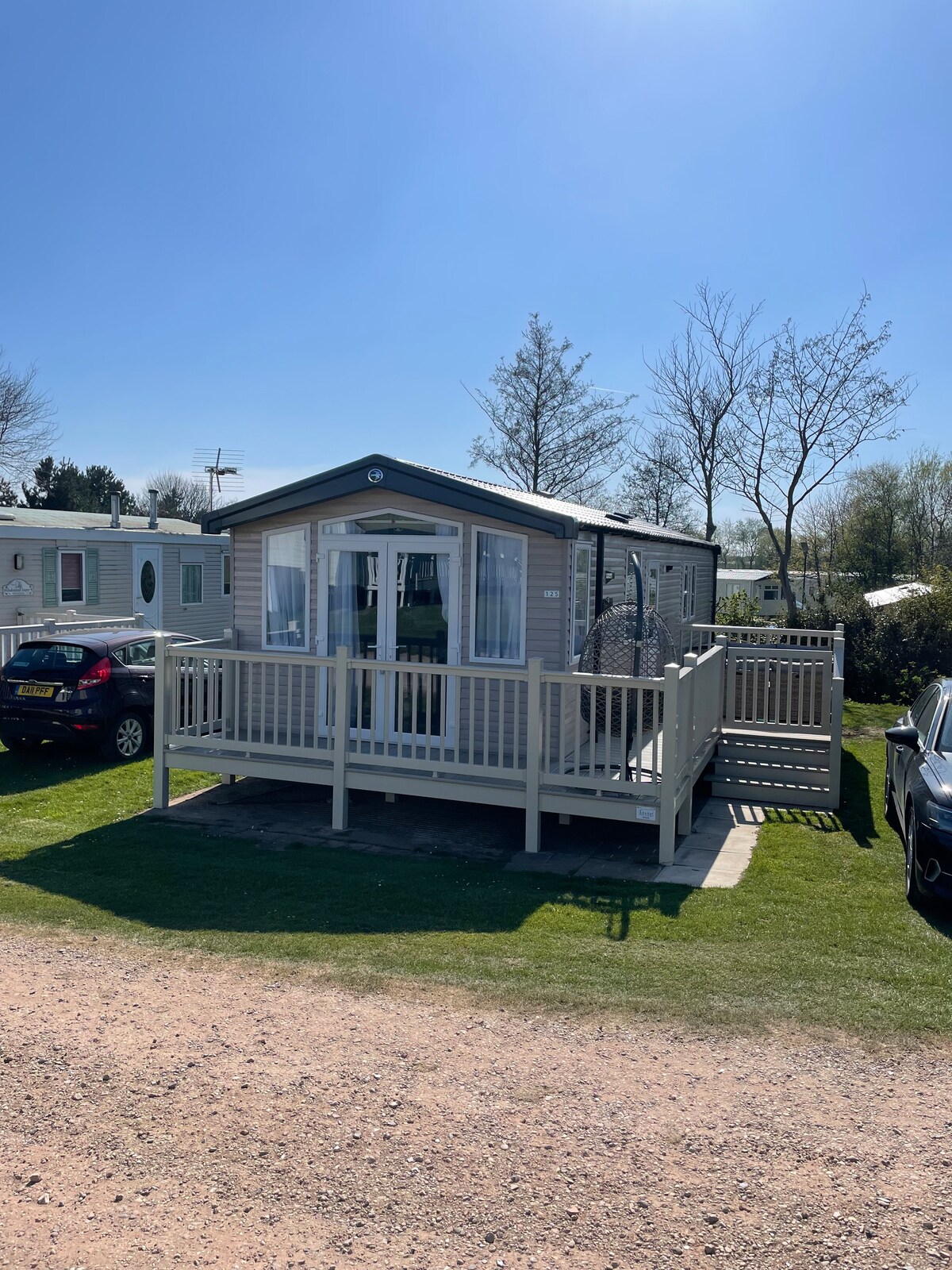 A clean and comfortable chalet for up to 6 guests. Well equipped kitchen, dining area, spacious comfy living room with large smart TV and fast wifi. Sunny outdoor decking with BBQ, games and outdoor furniture and plenty of outdoor space within a family friendly secure resort a short walk from the beach. Free Parking and so much to do close by no car will be needed. Walk to bowling, cinema, restaurants, bars and optional day passes for the heated pool, entertainment and other great facilities.