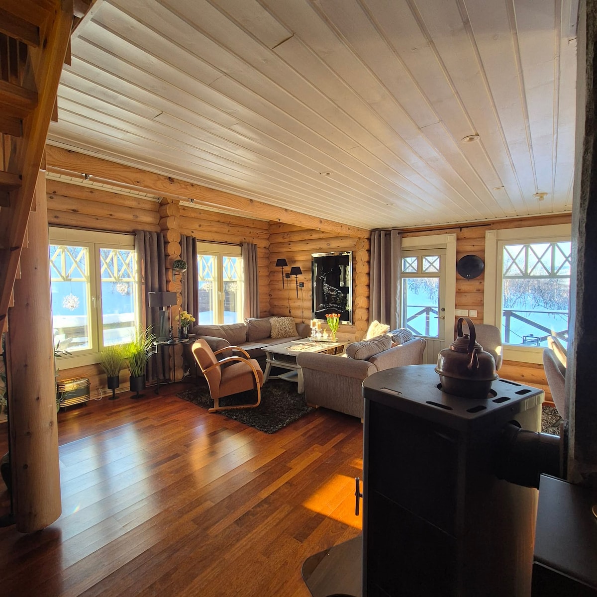 Hide away in Northern Lapland. Stay in a unique architect-designed log cabin, have fun in the nature and enjoy the northern lights. Villa Sivakka has been consistently rated by Airbnb as the Nr 1 location in Finland. "Juha’s place was a dream to be in. The view from the cabin was breathless, and looked like it was just out of a poster. We absolutely loved our stay." Add Villa Sivakka to your favourites by clicking ❤️ in the upper-right corner.