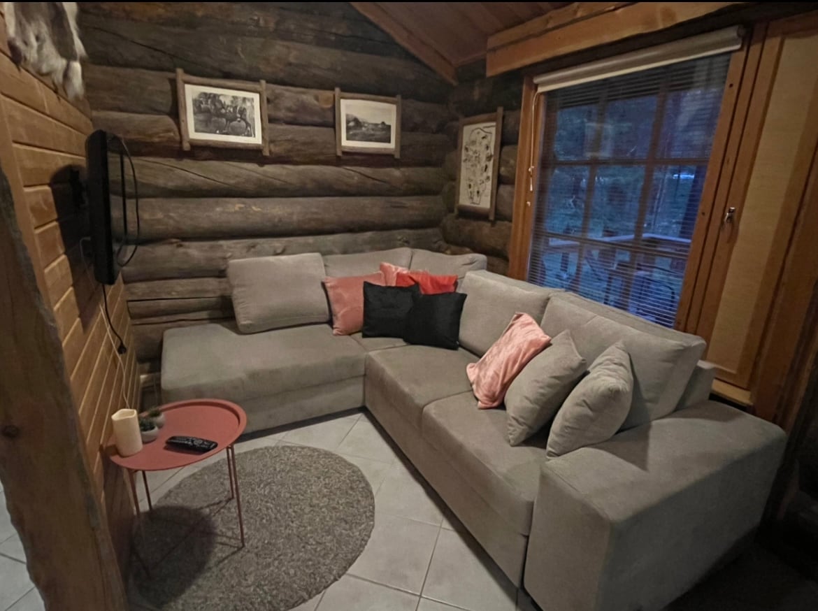 Feel cozy and relaxed in this beautifully renovated wooden semi-detached log cabin. Perfect view to Ylläs-fjell. Atmospheric sauna and bathroom. Fully equipped kitchen. Separate toilet. No light pollution, good for seeing northern lights! Two bedrooms, each with 160cm double beds. Also a bunk bed (perfect for kids or youngsters). A baby cot available. Walking distance to food store, restaurants, cafe’s, bus stop. Ski tracks 400m. Restaurant 700m, shop 1 km. Gondola 5 min drive.