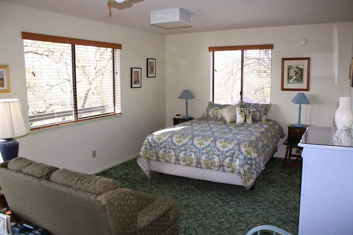 Tranquil & modern studio w/ loft located 90 min fm Yosemite, w/private garden patio & EV car charging stn, in a Foothill neighborhood. We’re sorry, but we cannot accept children. The space is a clean, quiet, studio w/ kitchen, queen sized bed, futon couch, bathroom with a rain shower head, & sleeping loft. It's stocked with luxurious throws, linens, and towels. We are a LGBT family. We speak Spanish & have traveled extensively & lived internationally. We welcome you to our peaceful retreat!