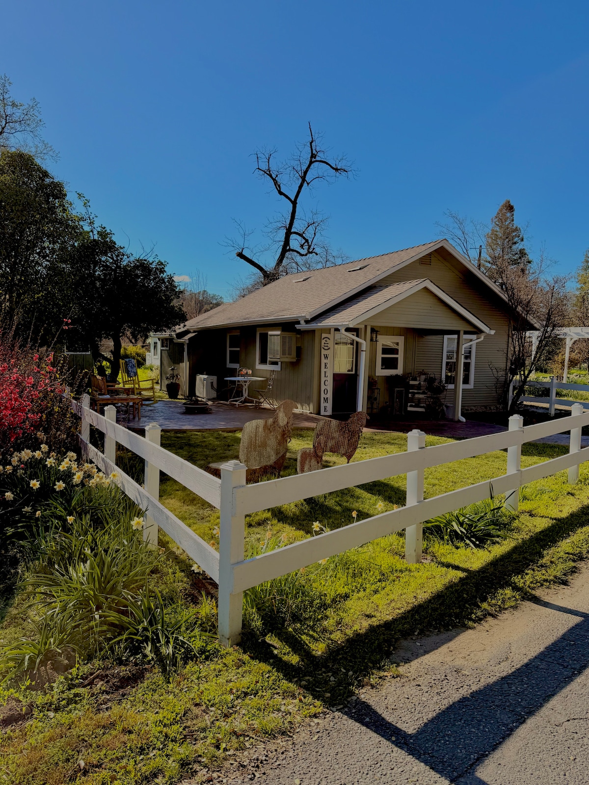 GET AWAY TO THE COUNTRY CHARM OF MURPHYS CALIFORNIA. Wimberly Cottage @ Red Rooster Ranch. An exceptionally cute, clean, classy, chic, comfortable, cozy cottage awaits. A 5 minute walk to the Town’s shops, restaurants, fairytale park, wine-tasting, concerts - relaxation and entertainment. Queen bed, soaking tub and shower, outfitted kitchenette with microwave/convection oven, patios with barbecue, washer/dryer, TV, WiFi, in a beautiful garden setting. THE FINEST MURPHYS HAS TO OFFER.
