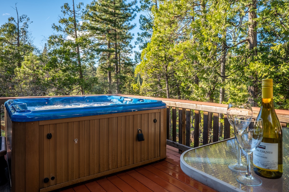 约塞米蒂公园树林中的舒适小木屋-热水浴缸