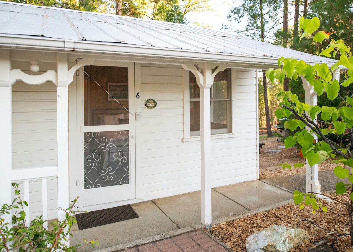 Our Deluxe Cottage is the perfect cottage for two guests, with its landscaped garden atmosphere. Private and full of country charm, this deluxe cottage can be your 'home away from home' for your stay here at the Sugar Pine Ranch. Guests staying in our deluxe cottages can enjoy whirlpool tubs and shower. All cottage guests have easy access to rock-lined trails to our pool retreat area located in scenic surroundings above the lodge. Deluxe cottage guests also have a private deck.